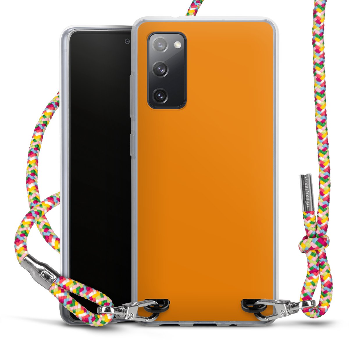 The flexible case is made from a highquality TPU material (thermoplastic Polyurethan). Thanks to its longlasting and break resistant characterisitcs, the case is flexible yet consistent in form and has a great grip and feel. The textile strap made from Polyester gives a chic yet casual accent allowing you to carry your phone like a bag or necklace - a practical gadget perfect for your next adventure. The textile strap is about 1.70 meters long and the length can easily be adjusted through the knots. Our Carry Case is available in Colourful, Mint-Camouflage, Very-Berry, Sahara-Sand and Sparkling-Neon. The ends of the textile strap are covered with metallic end caps to protect them against fraying.