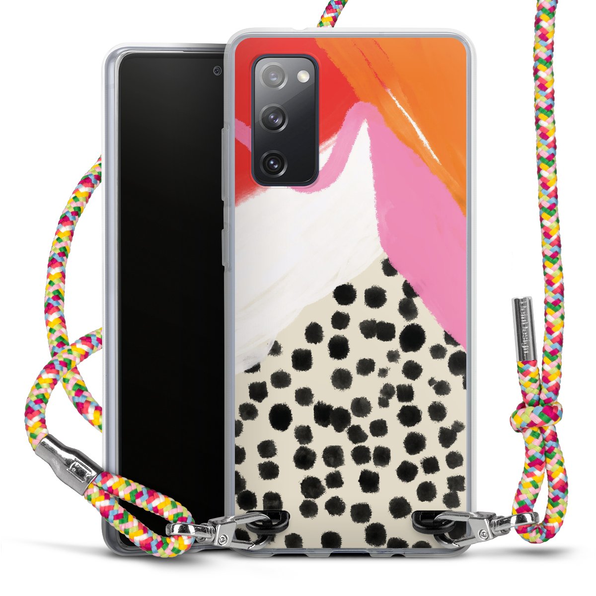 The flexible case is made from a highquality TPU material (thermoplastic Polyurethan). Thanks to its longlasting and break resistant characterisitcs, the case is flexible yet consistent in form and has a great grip and feel. The textile strap made from Polyester gives a chic yet casual accent allowing you to carry your phone like a bag or necklace - a practical gadget perfect for your next adventure. The textile strap is about 1.70 meters long and the length can easily be adjusted through the knots. Our Carry Case is available in Colourful, Mint-Camouflage, Very-Berry, Sahara-Sand and Sparkling-Neon. The ends of the textile strap are covered with metallic end caps to protect them against fraying.