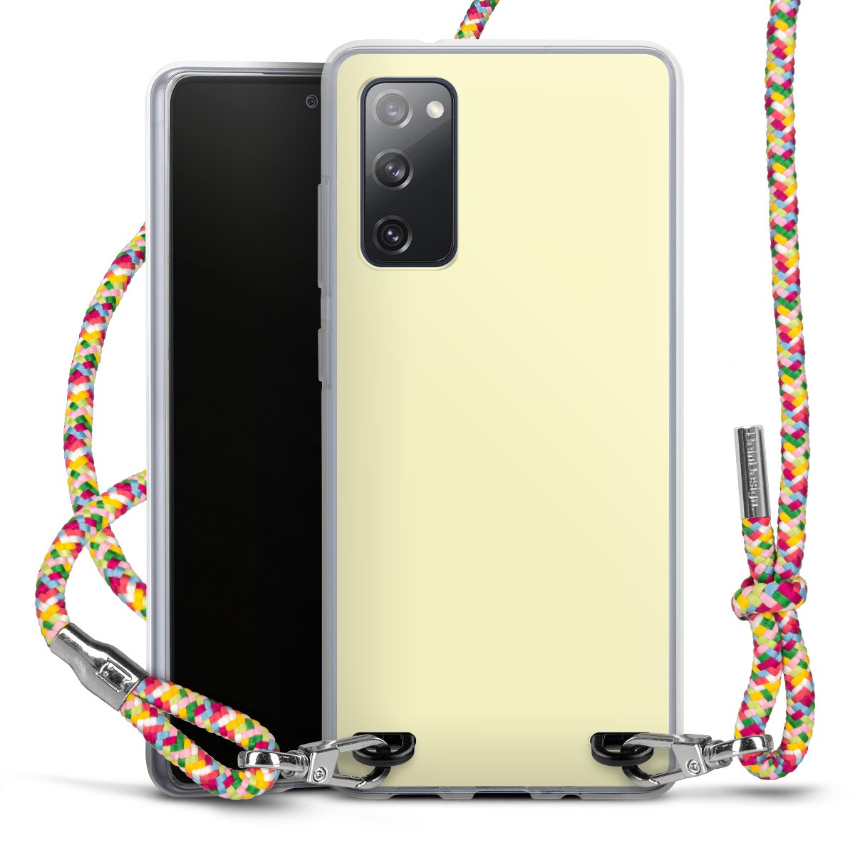 The flexible case is made from a highquality TPU material (thermoplastic Polyurethan). Thanks to its longlasting and break resistant characterisitcs, the case is flexible yet consistent in form and has a great grip and feel. The textile strap made from Polyester gives a chic yet casual accent allowing you to carry your phone like a bag or necklace - a practical gadget perfect for your next adventure. The textile strap is about 1.70 meters long and the length can easily be adjusted through the knots. Our Carry Case is available in Colourful, Mint-Camouflage, Very-Berry, Sahara-Sand and Sparkling-Neon. The ends of the textile strap are covered with metallic end caps to protect them against fraying.