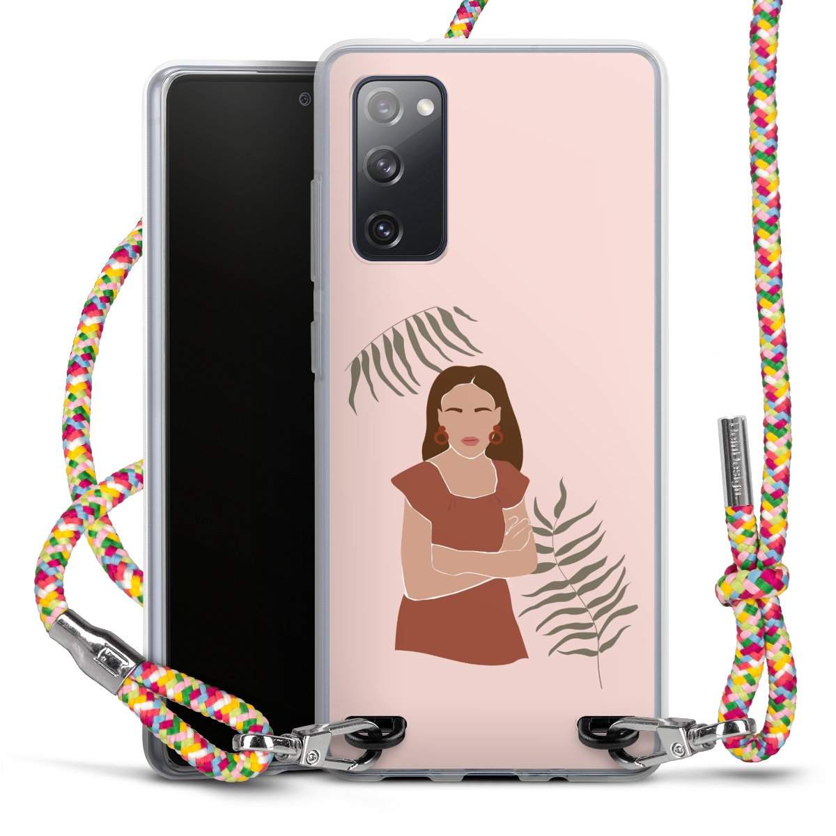 The flexible case is made from a highquality TPU material (thermoplastic Polyurethan). Thanks to its longlasting and break resistant characterisitcs, the case is flexible yet consistent in form and has a great grip and feel. The textile strap made from Polyester gives a chic yet casual accent allowing you to carry your phone like a bag or necklace - a practical gadget perfect for your next adventure. The textile strap is about 1.70 meters long and the length can easily be adjusted through the knots. Our Carry Case is available in Colourful, Mint-Camouflage, Very-Berry, Sahara-Sand and Sparkling-Neon. The ends of the textile strap are covered with metallic end caps to protect them against fraying.