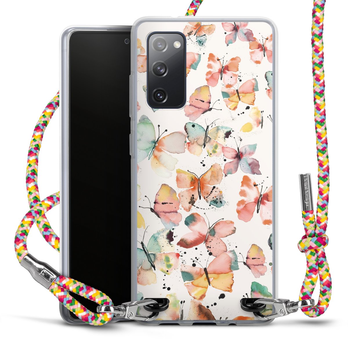 The flexible case is made from a highquality TPU material (thermoplastic Polyurethan). Thanks to its longlasting and break resistant characterisitcs, the case is flexible yet consistent in form and has a great grip and feel. The textile strap made from Polyester gives a chic yet casual accent allowing you to carry your phone like a bag or necklace - a practical gadget perfect for your next adventure. The textile strap is about 1.70 meters long and the length can easily be adjusted through the knots. Our Carry Case is available in Colourful, Mint-Camouflage, Very-Berry, Sahara-Sand and Sparkling-Neon. The ends of the textile strap are covered with metallic end caps to protect them against fraying.