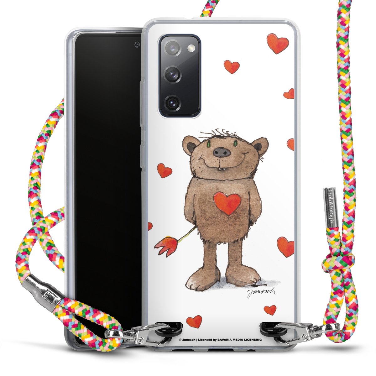 The flexible case is made from a highquality TPU material (thermoplastic Polyurethan). Thanks to its longlasting and break resistant characterisitcs, the case is flexible yet consistent in form and has a great grip and feel. The textile strap made from Polyester gives a chic yet casual accent allowing you to carry your phone like a bag or necklace - a practical gadget perfect for your next adventure. The textile strap is about 1.70 meters long and the length can easily be adjusted through the knots. Our Carry Case is available in Colourful, Mint-Camouflage, Very-Berry, Sahara-Sand and Sparkling-Neon. The ends of the textile strap are covered with metallic end caps to protect them against fraying.