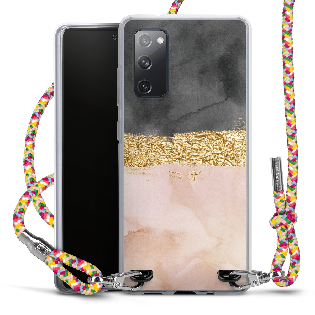 The flexible case is made from a highquality TPU material (thermoplastic Polyurethan). Thanks to its longlasting and break resistant characterisitcs, the case is flexible yet consistent in form and has a great grip and feel. The textile strap made from Polyester gives a chic yet casual accent allowing you to carry your phone like a bag or necklace - a practical gadget perfect for your next adventure. The textile strap is about 1.70 meters long and the length can easily be adjusted through the knots. Our Carry Case is available in Colourful, Mint-Camouflage, Very-Berry, Sahara-Sand and Sparkling-Neon. The ends of the textile strap are covered with metallic end caps to protect them against fraying.