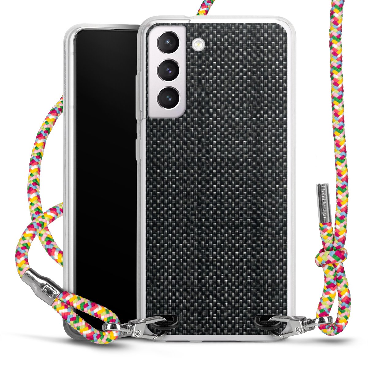 The flexible case is made from a highquality TPU material (thermoplastic Polyurethan). Thanks to its longlasting and break resistant characterisitcs, the case is flexible yet consistent in form and has a great grip and feel. The textile strap made from Polyester gives a chic yet casual accent allowing you to carry your phone like a bag or necklace - a practical gadget perfect for your next adventure. The textile strap is about 1.70 meters long and the length can easily be adjusted through the knots. Our Carry Case is available in Colourful, Mint-Camouflage, Very-Berry, Sahara-Sand and Sparkling-Neon. The ends of the textile strap are covered with metallic end caps to protect them against fraying.