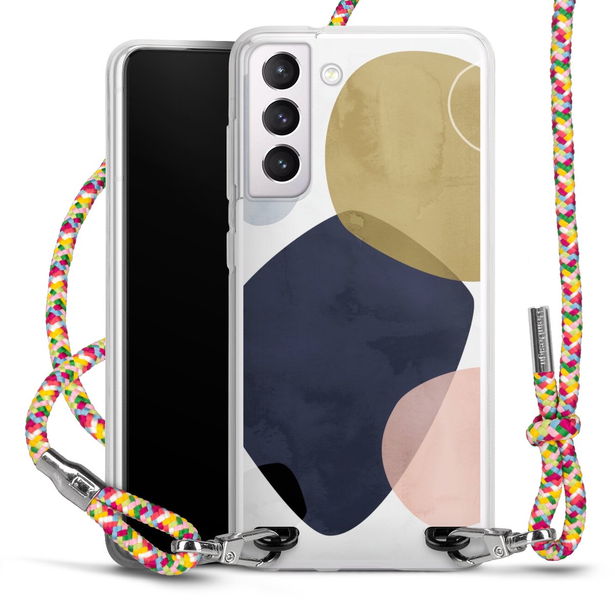 The flexible case is made from a highquality TPU material (thermoplastic Polyurethan). Thanks to its longlasting and break resistant characterisitcs, the case is flexible yet consistent in form and has a great grip and feel. The textile strap made from Polyester gives a chic yet casual accent allowing you to carry your phone like a bag or necklace - a practical gadget perfect for your next adventure. The textile strap is about 1.70 meters long and the length can easily be adjusted through the knots. Our Carry Case is available in Colourful, Mint-Camouflage, Very-Berry, Sahara-Sand and Sparkling-Neon. The ends of the textile strap are covered with metallic end caps to protect them against fraying.