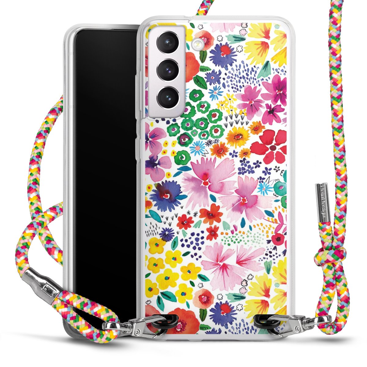 The flexible case is made from a highquality TPU material (thermoplastic Polyurethan). Thanks to its longlasting and break resistant characterisitcs, the case is flexible yet consistent in form and has a great grip and feel. The textile strap made from Polyester gives a chic yet casual accent allowing you to carry your phone like a bag or necklace - a practical gadget perfect for your next adventure. The textile strap is about 1.70 meters long and the length can easily be adjusted through the knots. Our Carry Case is available in Colourful, Mint-Camouflage, Very-Berry, Sahara-Sand and Sparkling-Neon. The ends of the textile strap are covered with metallic end caps to protect them against fraying.