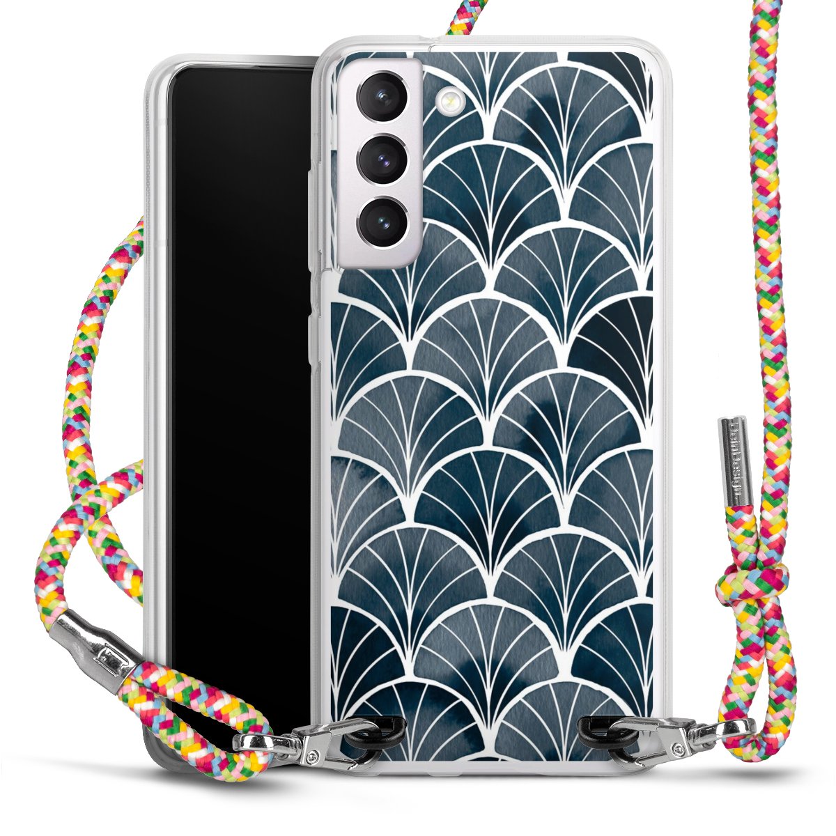 The flexible case is made from a highquality TPU material (thermoplastic Polyurethan). Thanks to its longlasting and break resistant characterisitcs, the case is flexible yet consistent in form and has a great grip and feel. The textile strap made from Polyester gives a chic yet casual accent allowing you to carry your phone like a bag or necklace - a practical gadget perfect for your next adventure. The textile strap is about 1.70 meters long and the length can easily be adjusted through the knots. Our Carry Case is available in Colourful, Mint-Camouflage, Very-Berry, Sahara-Sand and Sparkling-Neon. The ends of the textile strap are covered with metallic end caps to protect them against fraying.