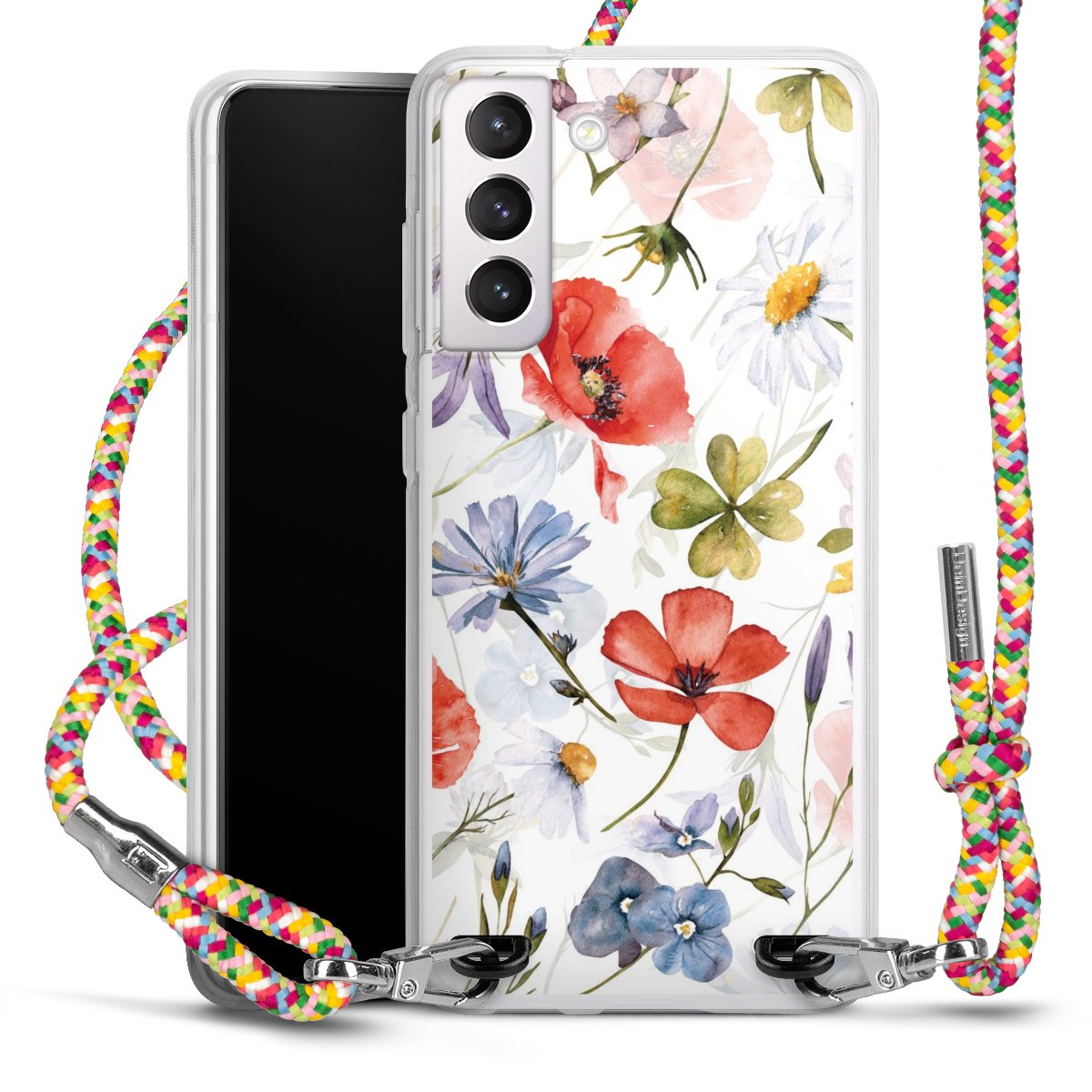 The flexible case is made from a highquality TPU material (thermoplastic Polyurethan). Thanks to its longlasting and break resistant characterisitcs, the case is flexible yet consistent in form and has a great grip and feel. The textile strap made from Polyester gives a chic yet casual accent allowing you to carry your phone like a bag or necklace - a practical gadget perfect for your next adventure. The textile strap is about 1.70 meters long and the length can easily be adjusted through the knots. Our Carry Case is available in Colourful, Mint-Camouflage, Very-Berry, Sahara-Sand and Sparkling-Neon. The ends of the textile strap are covered with metallic end caps to protect them against fraying.