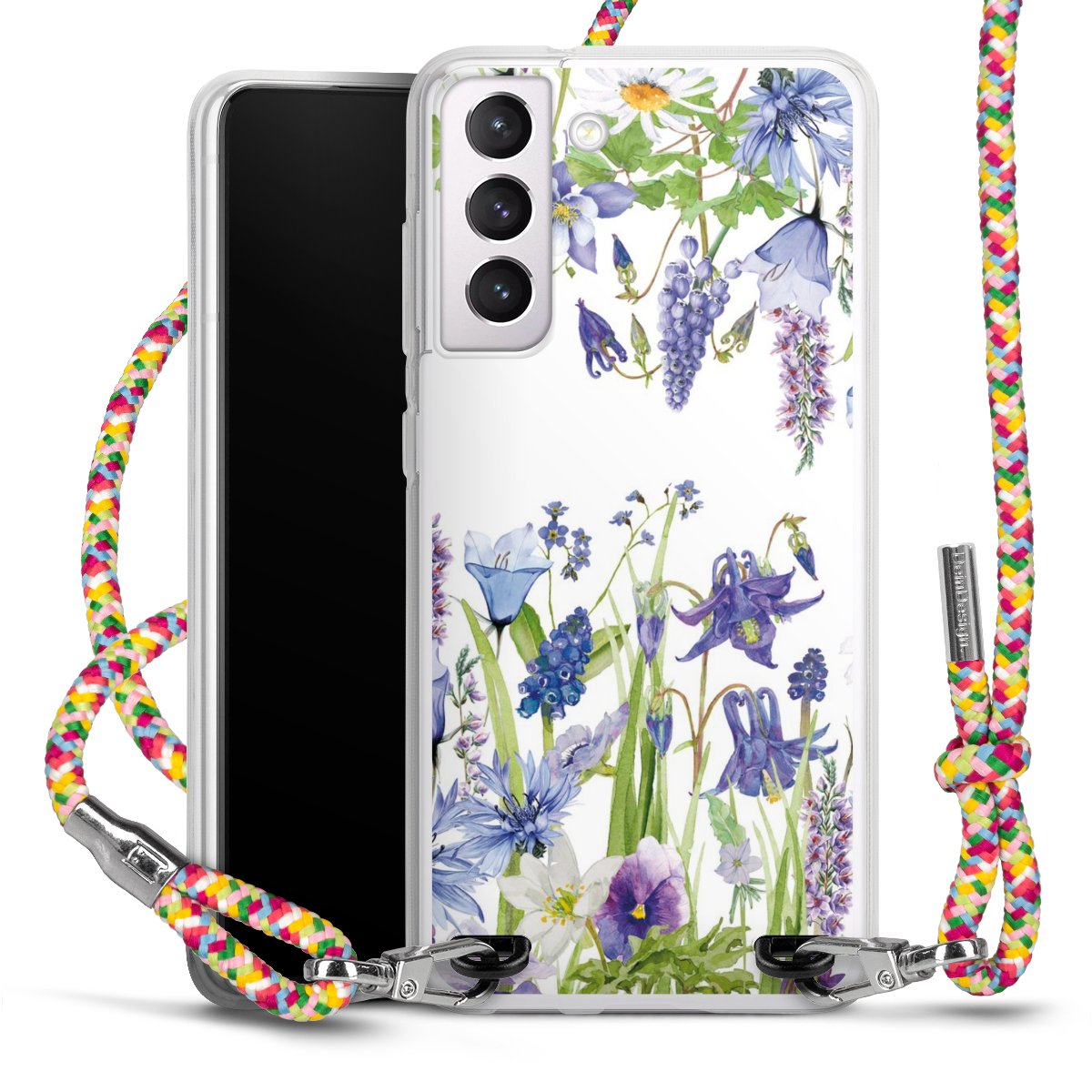 The flexible case is made from a highquality TPU material (thermoplastic Polyurethan). Thanks to its longlasting and break resistant characterisitcs, the case is flexible yet consistent in form and has a great grip and feel. The textile strap made from Polyester gives a chic yet casual accent allowing you to carry your phone like a bag or necklace - a practical gadget perfect for your next adventure. The textile strap is about 1.70 meters long and the length can easily be adjusted through the knots. Our Carry Case is available in Colourful, Mint-Camouflage, Very-Berry, Sahara-Sand and Sparkling-Neon. The ends of the textile strap are covered with metallic end caps to protect them against fraying.