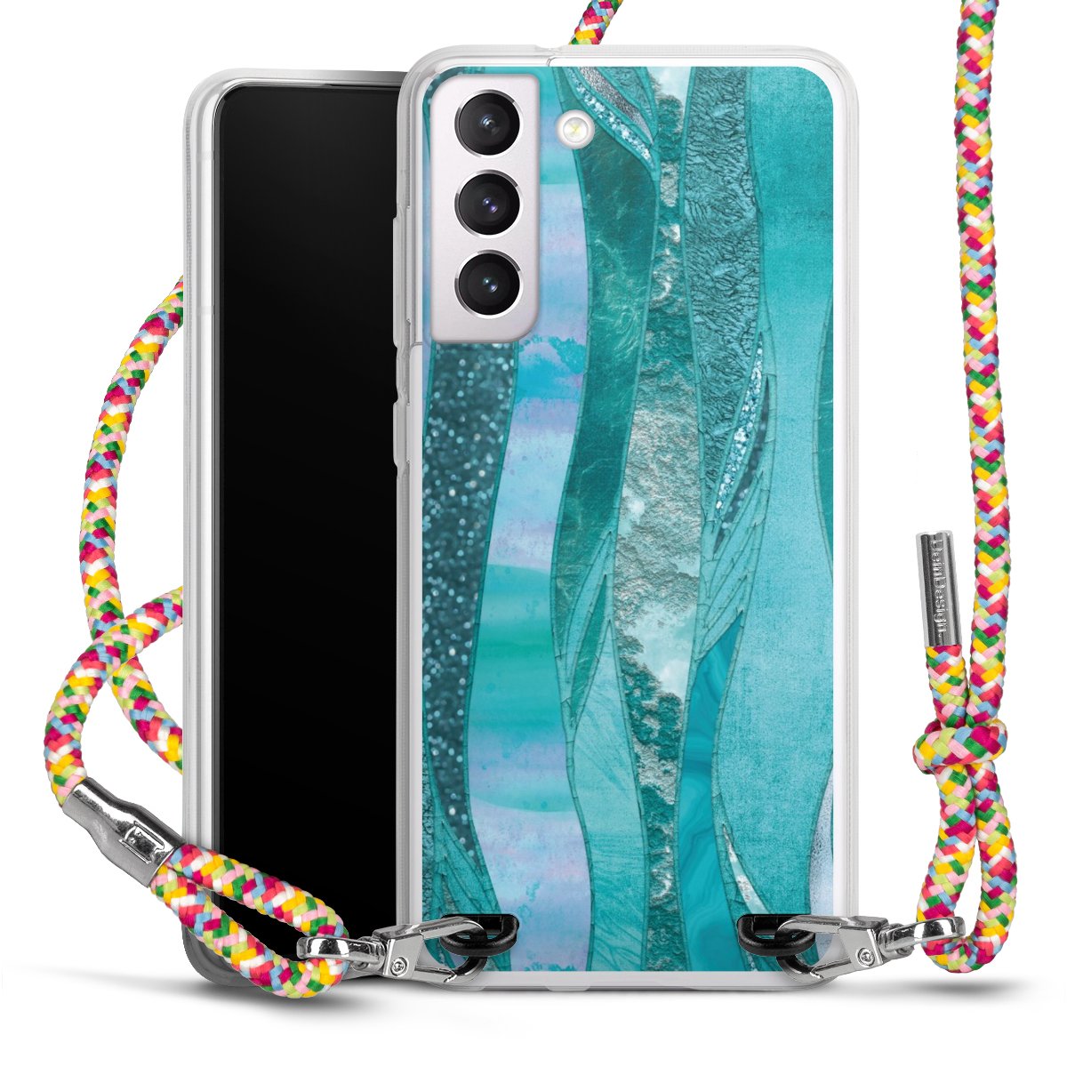 The flexible case is made from a highquality TPU material (thermoplastic Polyurethan). Thanks to its longlasting and break resistant characterisitcs, the case is flexible yet consistent in form and has a great grip and feel. The textile strap made from Polyester gives a chic yet casual accent allowing you to carry your phone like a bag or necklace - a practical gadget perfect for your next adventure. The textile strap is about 1.70 meters long and the length can easily be adjusted through the knots. Our Carry Case is available in Colourful, Mint-Camouflage, Very-Berry, Sahara-Sand and Sparkling-Neon. The ends of the textile strap are covered with metallic end caps to protect them against fraying.