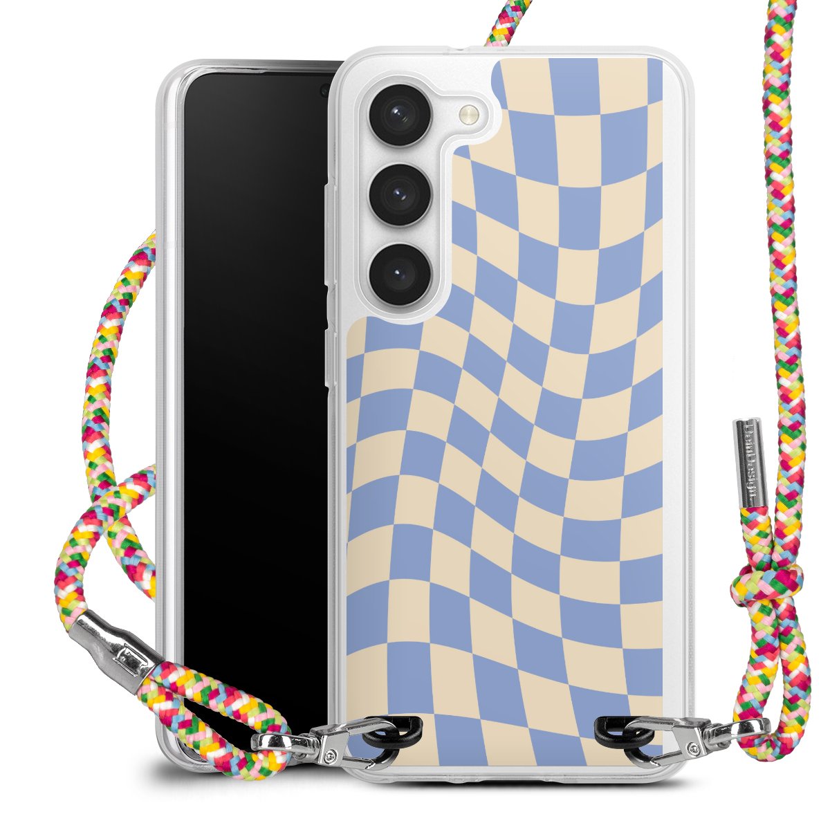 The flexible case is made from a highquality TPU material (thermoplastic Polyurethan). Thanks to its longlasting and break resistant characterisitcs, the case is flexible yet consistent in form and has a great grip and feel. The textile strap made from Polyester gives a chic yet casual accent allowing you to carry your phone like a bag or necklace - a practical gadget perfect for your next adventure. The textile strap is about 1.70 meters long and the length can easily be adjusted through the knots. Our Carry Case is available in Colourful, Mint-Camouflage, Very-Berry, Sahara-Sand and Sparkling-Neon. The ends of the textile strap are covered with metallic end caps to protect them against fraying.
