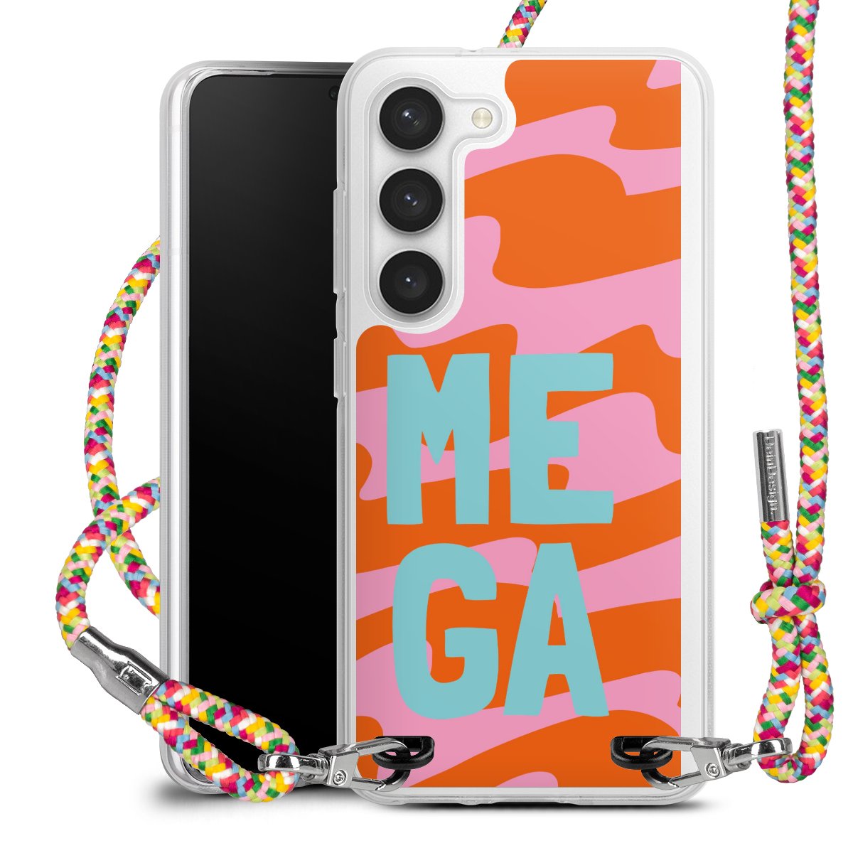 The flexible case is made from a highquality TPU material (thermoplastic Polyurethan). Thanks to its longlasting and break resistant characterisitcs, the case is flexible yet consistent in form and has a great grip and feel. The textile strap made from Polyester gives a chic yet casual accent allowing you to carry your phone like a bag or necklace - a practical gadget perfect for your next adventure. The textile strap is about 1.70 meters long and the length can easily be adjusted through the knots. Our Carry Case is available in Colourful, Mint-Camouflage, Very-Berry, Sahara-Sand and Sparkling-Neon. The ends of the textile strap are covered with metallic end caps to protect them against fraying.