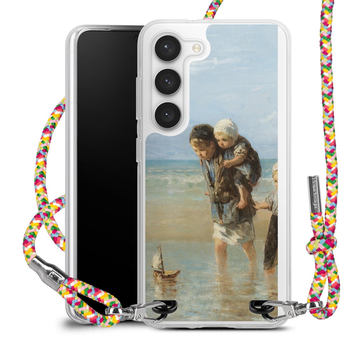The flexible case is made from a highquality TPU material (thermoplastic Polyurethan). Thanks to its longlasting and break resistant characterisitcs, the case is flexible yet consistent in form and has a great grip and feel. The textile strap made from Polyester gives a chic yet casual accent allowing you to carry your phone like a bag or necklace - a practical gadget perfect for your next adventure. The textile strap is about 1.70 meters long and the length can easily be adjusted through the knots. Our Carry Case is available in Colourful, Mint-Camouflage, Very-Berry, Sahara-Sand and Sparkling-Neon. The ends of the textile strap are covered with metallic end caps to protect them against fraying.