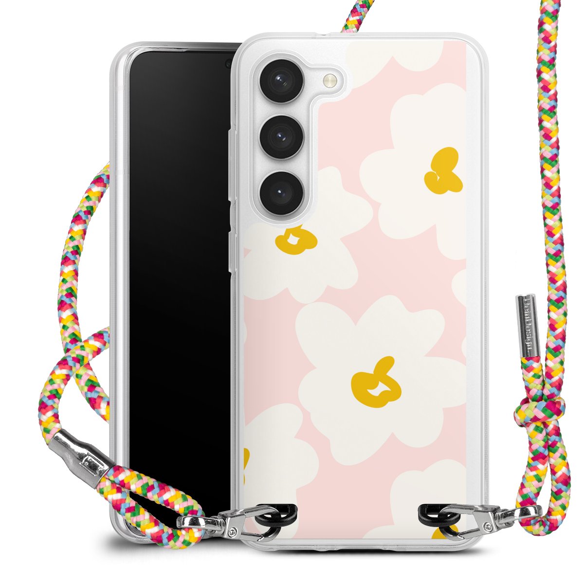 The flexible case is made from a highquality TPU material (thermoplastic Polyurethan). Thanks to its longlasting and break resistant characterisitcs, the case is flexible yet consistent in form and has a great grip and feel. The textile strap made from Polyester gives a chic yet casual accent allowing you to carry your phone like a bag or necklace - a practical gadget perfect for your next adventure. The textile strap is about 1.70 meters long and the length can easily be adjusted through the knots. Our Carry Case is available in Colourful, Mint-Camouflage, Very-Berry, Sahara-Sand and Sparkling-Neon. The ends of the textile strap are covered with metallic end caps to protect them against fraying.