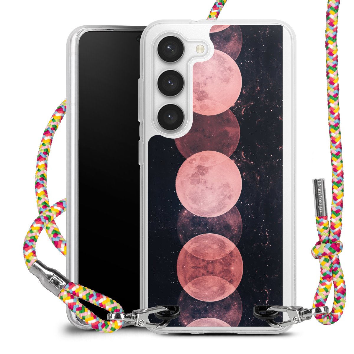 The flexible case is made from a highquality TPU material (thermoplastic Polyurethan). Thanks to its longlasting and break resistant characterisitcs, the case is flexible yet consistent in form and has a great grip and feel. The textile strap made from Polyester gives a chic yet casual accent allowing you to carry your phone like a bag or necklace - a practical gadget perfect for your next adventure. The textile strap is about 1.70 meters long and the length can easily be adjusted through the knots. Our Carry Case is available in Colourful, Mint-Camouflage, Very-Berry, Sahara-Sand and Sparkling-Neon. The ends of the textile strap are covered with metallic end caps to protect them against fraying.