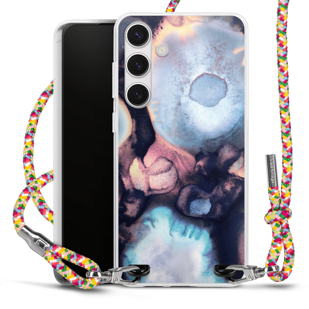 The flexible case is made from a highquality TPU material (thermoplastic Polyurethan). Thanks to its longlasting and break resistant characterisitcs, the case is flexible yet consistent in form and has a great grip and feel. The textile strap made from Polyester gives a chic yet casual accent allowing you to carry your phone like a bag or necklace - a practical gadget perfect for your next adventure. The textile strap is about 1.70 meters long and the length can easily be adjusted through the knots. Our Carry Case is available in Colourful, Mint-Camouflage, Very-Berry, Sahara-Sand and Sparkling-Neon. The ends of the textile strap are covered with metallic end caps to protect them against fraying.