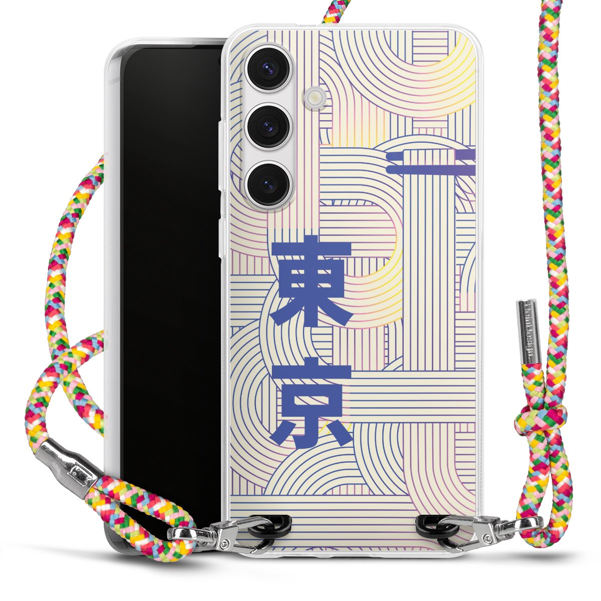 The flexible case is made from a highquality TPU material (thermoplastic Polyurethan). Thanks to its longlasting and break resistant characterisitcs, the case is flexible yet consistent in form and has a great grip and feel. The textile strap made from Polyester gives a chic yet casual accent allowing you to carry your phone like a bag or necklace - a practical gadget perfect for your next adventure. The textile strap is about 1.70 meters long and the length can easily be adjusted through the knots. Our Carry Case is available in Colourful, Mint-Camouflage, Very-Berry, Sahara-Sand and Sparkling-Neon. The ends of the textile strap are covered with metallic end caps to protect them against fraying.