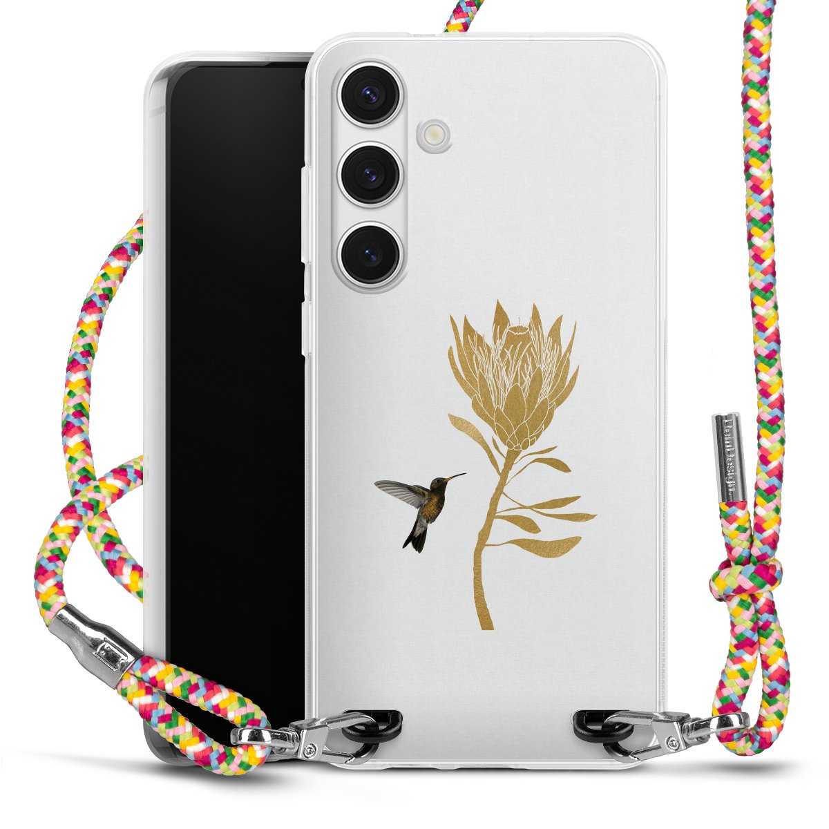 The flexible case is made from a highquality TPU material (thermoplastic Polyurethan). Thanks to its longlasting and break resistant characterisitcs, the case is flexible yet consistent in form and has a great grip and feel. The textile strap made from Polyester gives a chic yet casual accent allowing you to carry your phone like a bag or necklace - a practical gadget perfect for your next adventure. The textile strap is about 1.70 meters long and the length can easily be adjusted through the knots. Our Carry Case is available in Colourful, Mint-Camouflage, Very-Berry, Sahara-Sand and Sparkling-Neon. The ends of the textile strap are covered with metallic end caps to protect them against fraying.
