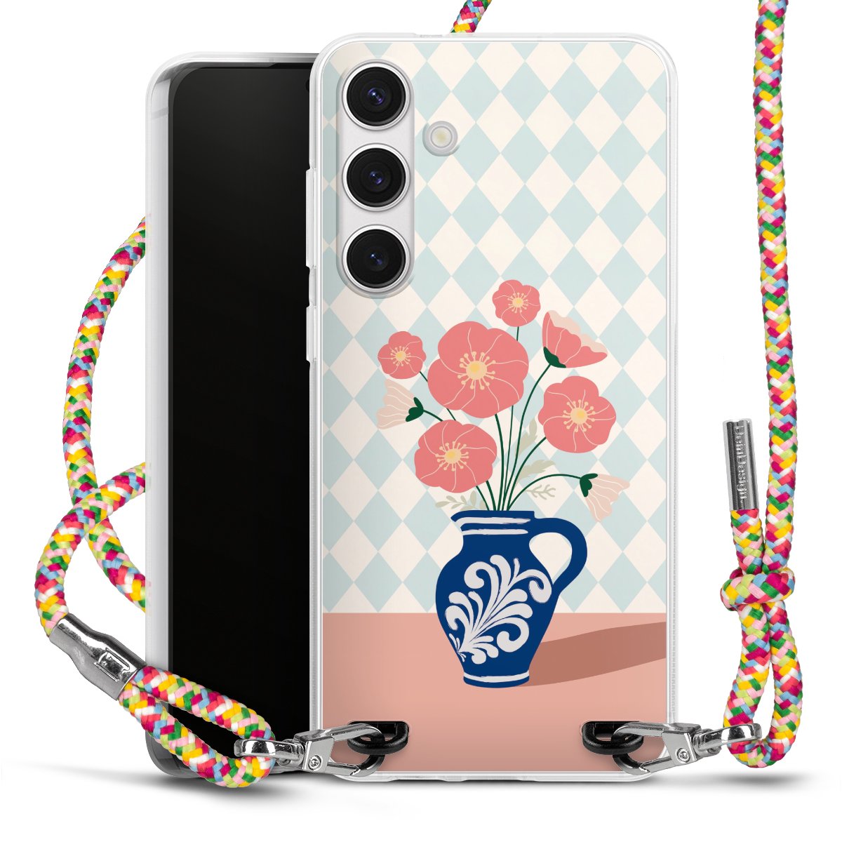 The flexible case is made from a highquality TPU material (thermoplastic Polyurethan). Thanks to its longlasting and break resistant characterisitcs, the case is flexible yet consistent in form and has a great grip and feel. The textile strap made from Polyester gives a chic yet casual accent allowing you to carry your phone like a bag or necklace - a practical gadget perfect for your next adventure. The textile strap is about 1.70 meters long and the length can easily be adjusted through the knots. Our Carry Case is available in Colourful, Mint-Camouflage, Very-Berry, Sahara-Sand and Sparkling-Neon. The ends of the textile strap are covered with metallic end caps to protect them against fraying.