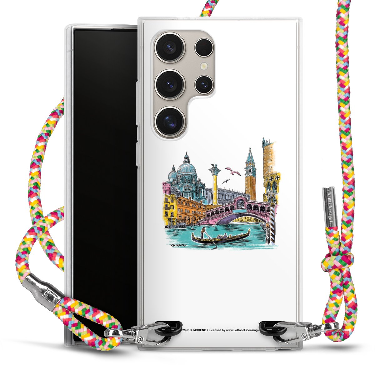 The flexible case is made from a highquality TPU material (thermoplastic Polyurethan). Thanks to its longlasting and break resistant characterisitcs, the case is flexible yet consistent in form and has a great grip and feel. The textile strap made from Polyester gives a chic yet casual accent allowing you to carry your phone like a bag or necklace - a practical gadget perfect for your next adventure. The textile strap is about 1.70 meters long and the length can easily be adjusted through the knots. Our Carry Case is available in Colourful, Mint-Camouflage, Very-Berry, Sahara-Sand and Sparkling-Neon. The ends of the textile strap are covered with metallic end caps to protect them against fraying.