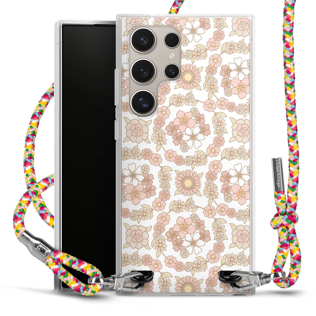The flexible case is made from a highquality TPU material (thermoplastic Polyurethan). Thanks to its longlasting and break resistant characterisitcs, the case is flexible yet consistent in form and has a great grip and feel. The textile strap made from Polyester gives a chic yet casual accent allowing you to carry your phone like a bag or necklace - a practical gadget perfect for your next adventure. The textile strap is about 1.70 meters long and the length can easily be adjusted through the knots. Our Carry Case is available in Colourful, Mint-Camouflage, Very-Berry, Sahara-Sand and Sparkling-Neon. The ends of the textile strap are covered with metallic end caps to protect them against fraying.