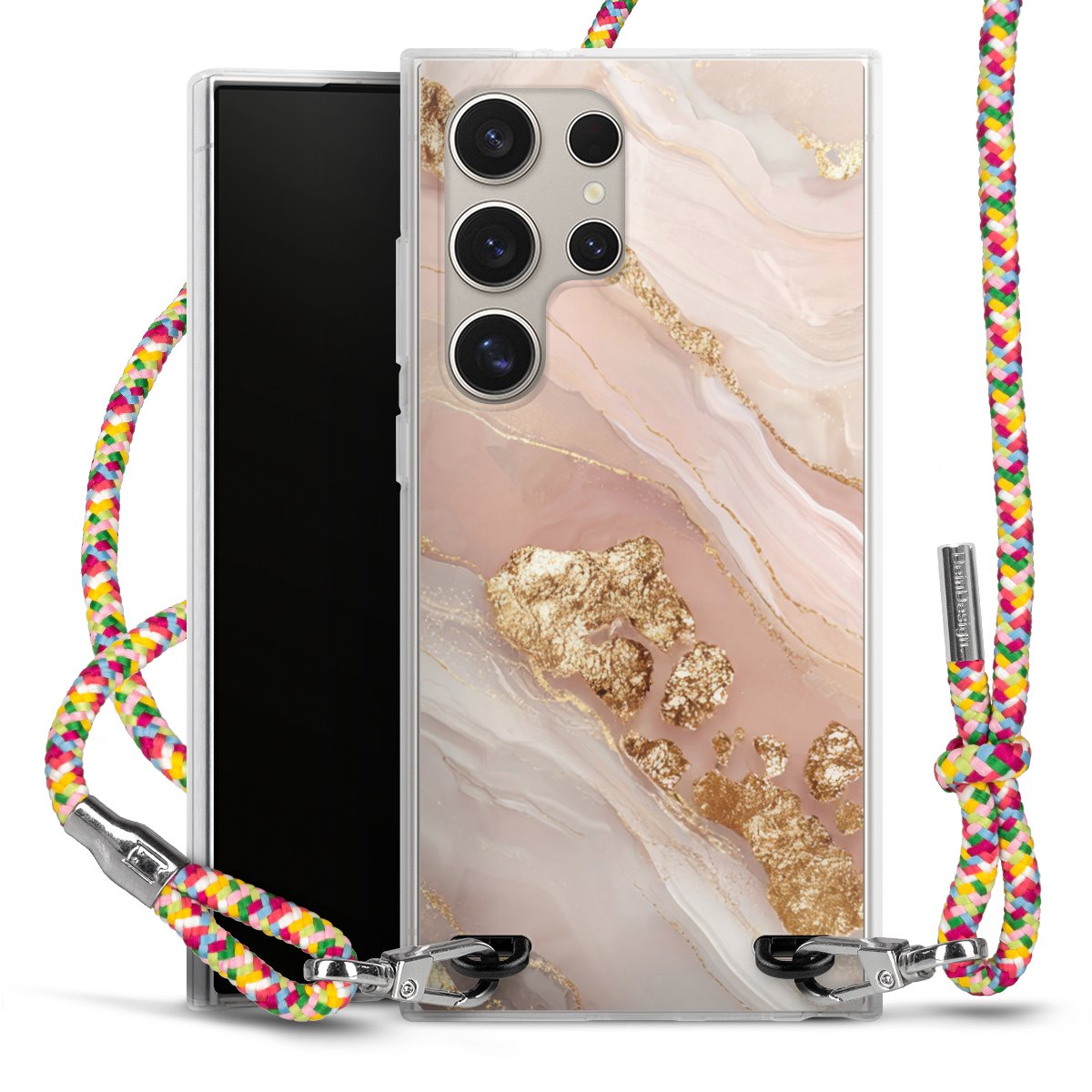The flexible case is made from a highquality TPU material (thermoplastic Polyurethan). Thanks to its longlasting and break resistant characterisitcs, the case is flexible yet consistent in form and has a great grip and feel. The textile strap made from Polyester gives a chic yet casual accent allowing you to carry your phone like a bag or necklace - a practical gadget perfect for your next adventure. The textile strap is about 1.70 meters long and the length can easily be adjusted through the knots. Our Carry Case is available in Colourful, Mint-Camouflage, Very-Berry, Sahara-Sand and Sparkling-Neon. The ends of the textile strap are covered with metallic end caps to protect them against fraying.