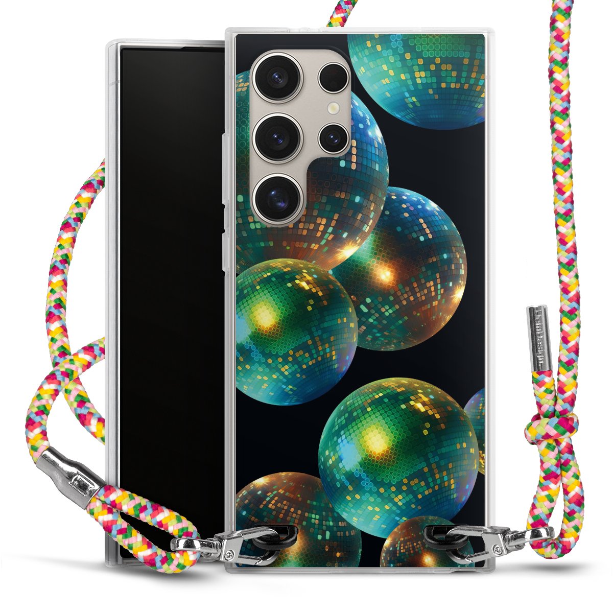 The flexible case is made from a highquality TPU material (thermoplastic Polyurethan). Thanks to its longlasting and break resistant characterisitcs, the case is flexible yet consistent in form and has a great grip and feel. The textile strap made from Polyester gives a chic yet casual accent allowing you to carry your phone like a bag or necklace - a practical gadget perfect for your next adventure. The textile strap is about 1.70 meters long and the length can easily be adjusted through the knots. Our Carry Case is available in Colourful, Mint-Camouflage, Very-Berry, Sahara-Sand and Sparkling-Neon. The ends of the textile strap are covered with metallic end caps to protect them against fraying.