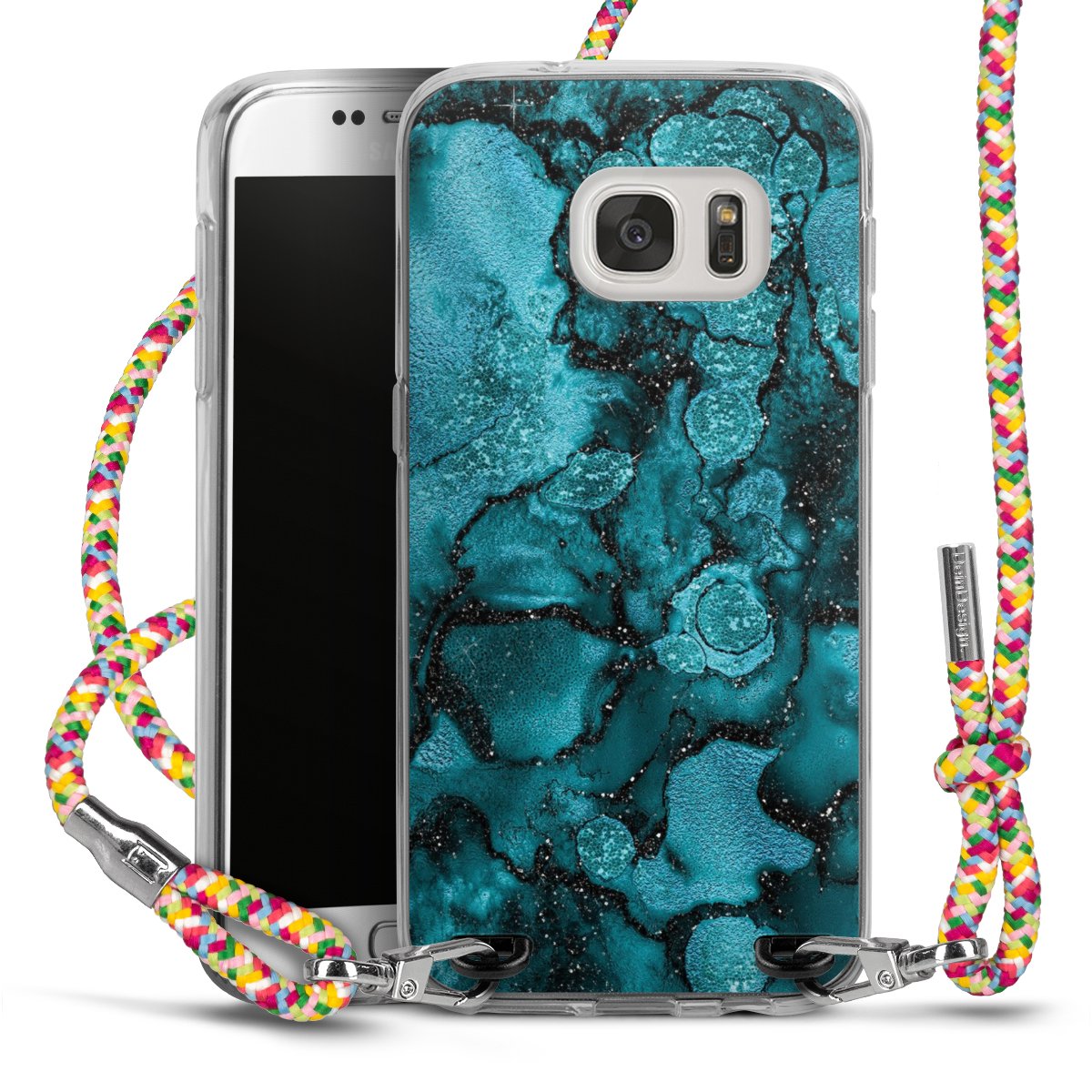 The flexible case is made from a highquality TPU material (thermoplastic Polyurethan). Thanks to its longlasting and break resistant characterisitcs, the case is flexible yet consistent in form and has a great grip and feel. The textile strap made from Polyester gives a chic yet casual accent allowing you to carry your phone like a bag or necklace - a practical gadget perfect for your next adventure. The textile strap is about 1.70 meters long and the length can easily be adjusted through the knots. Our Carry Case is available in Colourful, Mint-Camouflage, Very-Berry, Sahara-Sand and Sparkling-Neon. The ends of the textile strap are covered with metallic end caps to protect them against fraying.
