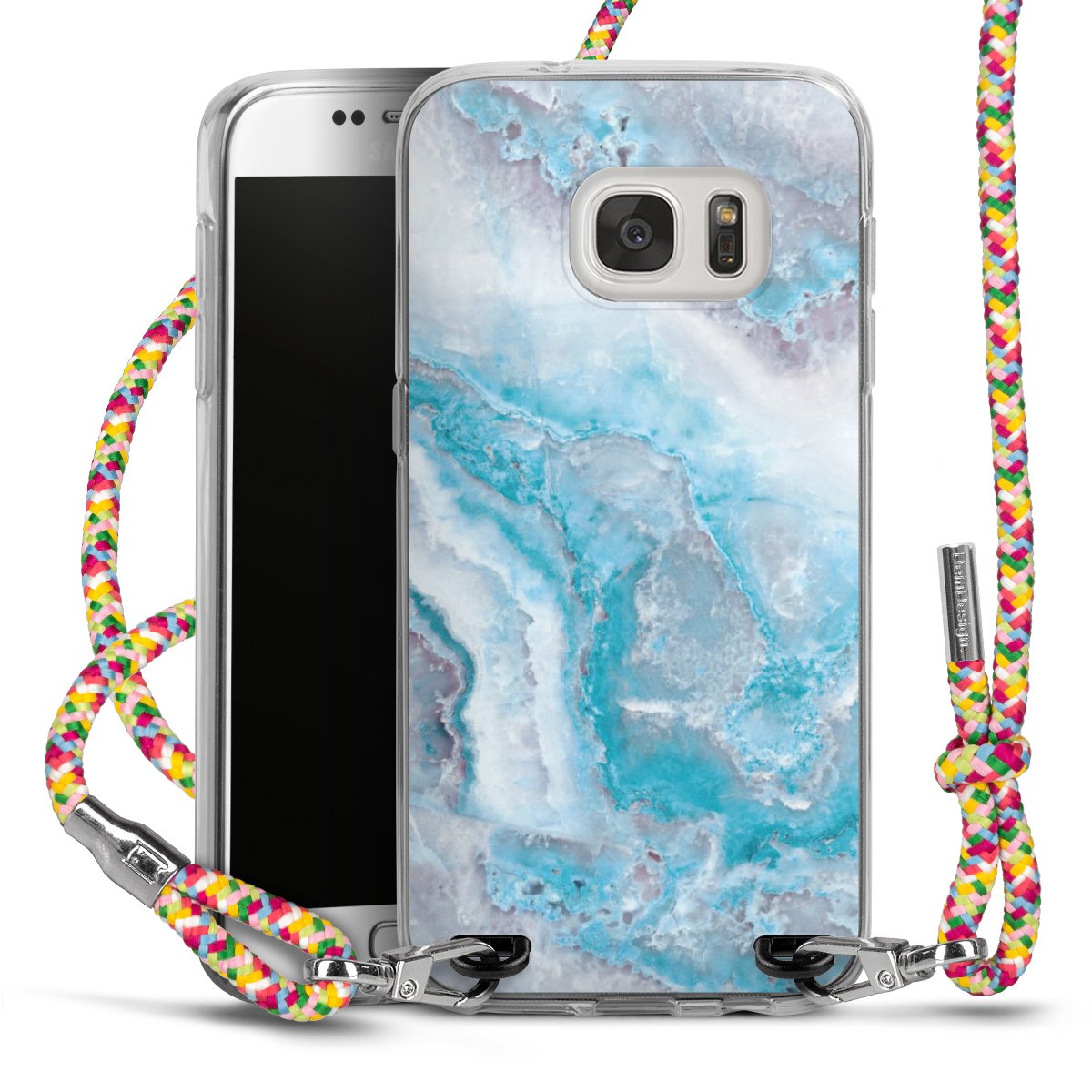 The flexible case is made from a highquality TPU material (thermoplastic Polyurethan). Thanks to its longlasting and break resistant characterisitcs, the case is flexible yet consistent in form and has a great grip and feel. The textile strap made from Polyester gives a chic yet casual accent allowing you to carry your phone like a bag or necklace - a practical gadget perfect for your next adventure. The textile strap is about 1.70 meters long and the length can easily be adjusted through the knots. Our Carry Case is available in Colourful, Mint-Camouflage, Very-Berry, Sahara-Sand and Sparkling-Neon. The ends of the textile strap are covered with metallic end caps to protect them against fraying.