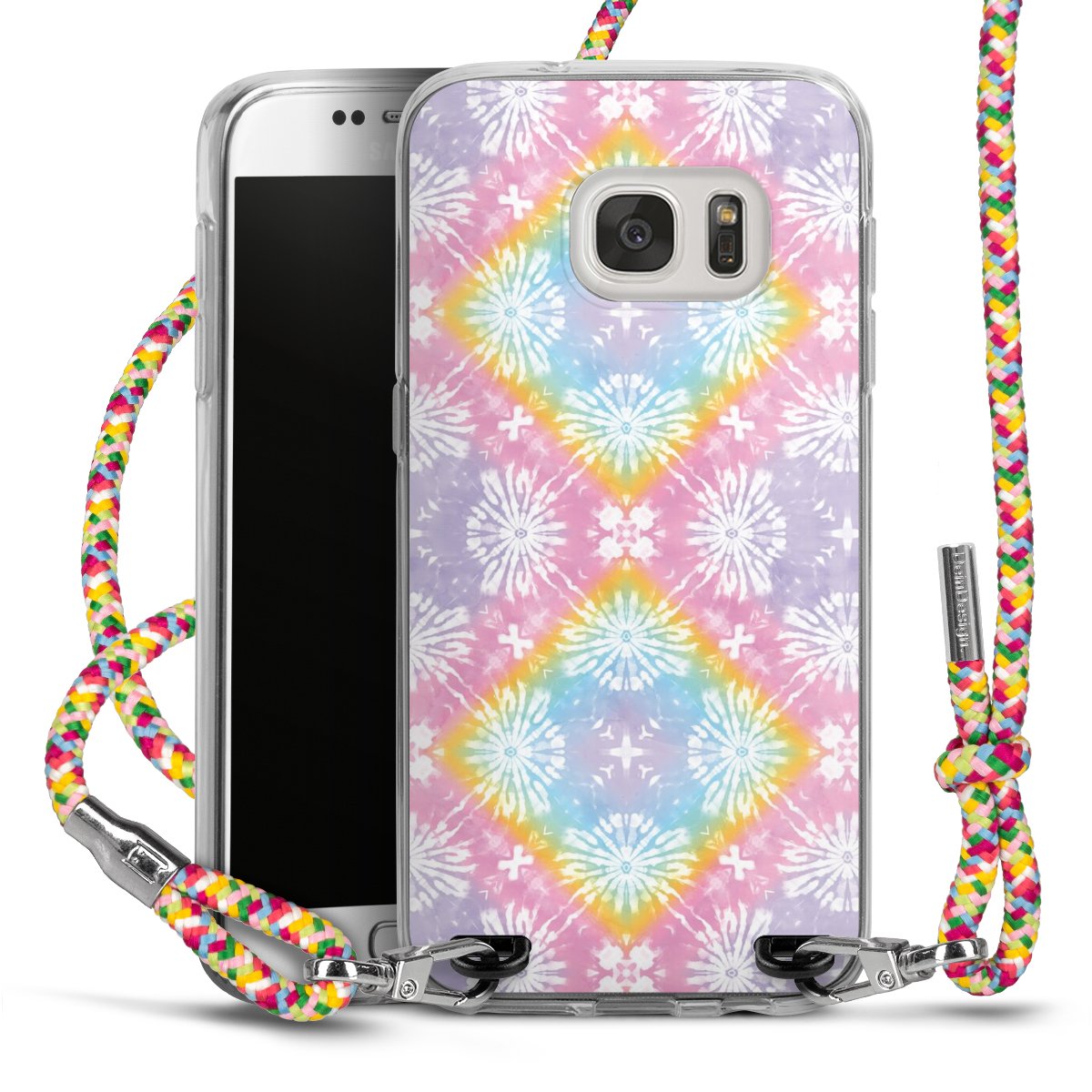 The flexible case is made from a highquality TPU material (thermoplastic Polyurethan). Thanks to its longlasting and break resistant characterisitcs, the case is flexible yet consistent in form and has a great grip and feel. The textile strap made from Polyester gives a chic yet casual accent allowing you to carry your phone like a bag or necklace - a practical gadget perfect for your next adventure. The textile strap is about 1.70 meters long and the length can easily be adjusted through the knots. Our Carry Case is available in Colourful, Mint-Camouflage, Very-Berry, Sahara-Sand and Sparkling-Neon. The ends of the textile strap are covered with metallic end caps to protect them against fraying.