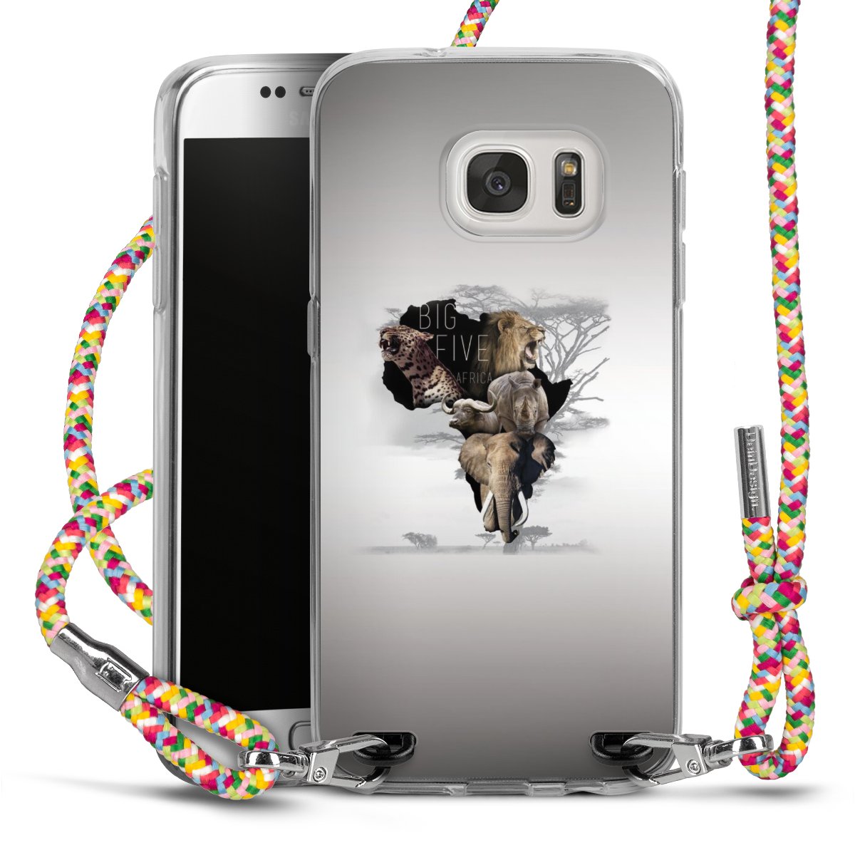 The flexible case is made from a highquality TPU material (thermoplastic Polyurethan). Thanks to its longlasting and break resistant characterisitcs, the case is flexible yet consistent in form and has a great grip and feel. The textile strap made from Polyester gives a chic yet casual accent allowing you to carry your phone like a bag or necklace - a practical gadget perfect for your next adventure. The textile strap is about 1.70 meters long and the length can easily be adjusted through the knots. Our Carry Case is available in Colourful, Mint-Camouflage, Very-Berry, Sahara-Sand and Sparkling-Neon. The ends of the textile strap are covered with metallic end caps to protect them against fraying.