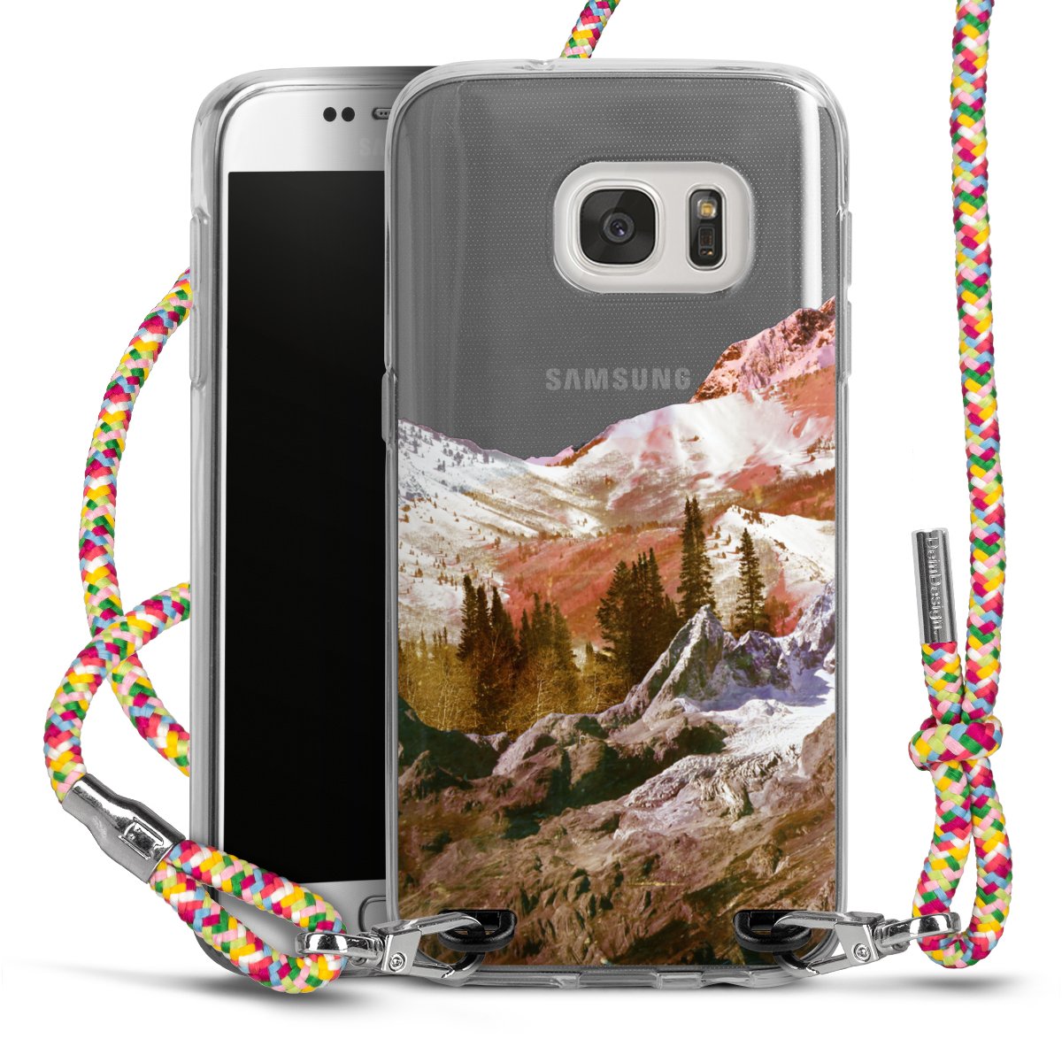 The flexible case is made from a highquality TPU material (thermoplastic Polyurethan). Thanks to its longlasting and break resistant characterisitcs, the case is flexible yet consistent in form and has a great grip and feel. The textile strap made from Polyester gives a chic yet casual accent allowing you to carry your phone like a bag or necklace - a practical gadget perfect for your next adventure. The textile strap is about 1.70 meters long and the length can easily be adjusted through the knots. Our Carry Case is available in Colourful, Mint-Camouflage, Very-Berry, Sahara-Sand and Sparkling-Neon. The ends of the textile strap are covered with metallic end caps to protect them against fraying.