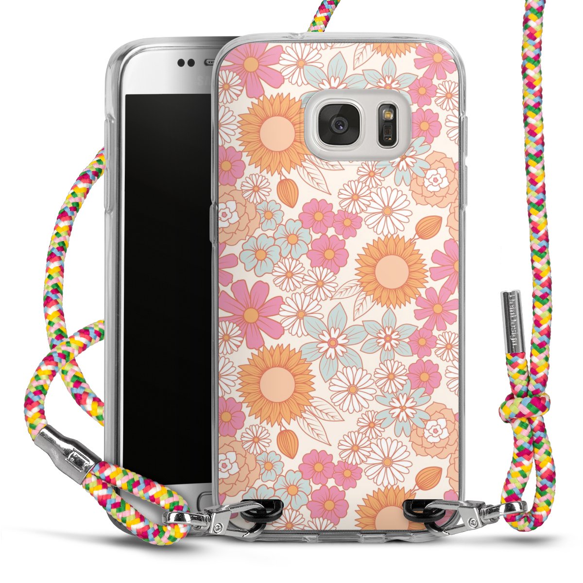 The flexible case is made from a highquality TPU material (thermoplastic Polyurethan). Thanks to its longlasting and break resistant characterisitcs, the case is flexible yet consistent in form and has a great grip and feel. The textile strap made from Polyester gives a chic yet casual accent allowing you to carry your phone like a bag or necklace - a practical gadget perfect for your next adventure. The textile strap is about 1.70 meters long and the length can easily be adjusted through the knots. Our Carry Case is available in Colourful, Mint-Camouflage, Very-Berry, Sahara-Sand and Sparkling-Neon. The ends of the textile strap are covered with metallic end caps to protect them against fraying.