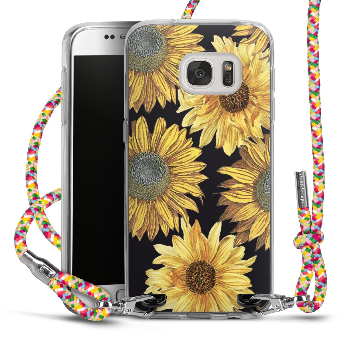 The flexible case is made from a highquality TPU material (thermoplastic Polyurethan). Thanks to its longlasting and break resistant characterisitcs, the case is flexible yet consistent in form and has a great grip and feel. The textile strap made from Polyester gives a chic yet casual accent allowing you to carry your phone like a bag or necklace - a practical gadget perfect for your next adventure. The textile strap is about 1.70 meters long and the length can easily be adjusted through the knots. Our Carry Case is available in Colourful, Mint-Camouflage, Very-Berry, Sahara-Sand and Sparkling-Neon. The ends of the textile strap are covered with metallic end caps to protect them against fraying.