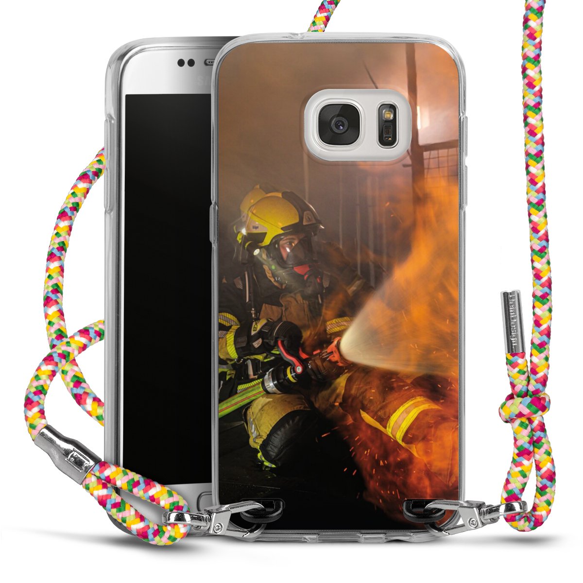The flexible case is made from a highquality TPU material (thermoplastic Polyurethan). Thanks to its longlasting and break resistant characterisitcs, the case is flexible yet consistent in form and has a great grip and feel. The textile strap made from Polyester gives a chic yet casual accent allowing you to carry your phone like a bag or necklace - a practical gadget perfect for your next adventure. The textile strap is about 1.70 meters long and the length can easily be adjusted through the knots. Our Carry Case is available in Colourful, Mint-Camouflage, Very-Berry, Sahara-Sand and Sparkling-Neon. The ends of the textile strap are covered with metallic end caps to protect them against fraying.