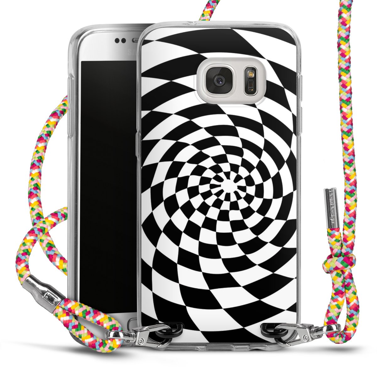 The flexible case is made from a highquality TPU material (thermoplastic Polyurethan). Thanks to its longlasting and break resistant characterisitcs, the case is flexible yet consistent in form and has a great grip and feel. The textile strap made from Polyester gives a chic yet casual accent allowing you to carry your phone like a bag or necklace - a practical gadget perfect for your next adventure. The textile strap is about 1.70 meters long and the length can easily be adjusted through the knots. Our Carry Case is available in Colourful, Mint-Camouflage, Very-Berry, Sahara-Sand and Sparkling-Neon. The ends of the textile strap are covered with metallic end caps to protect them against fraying.