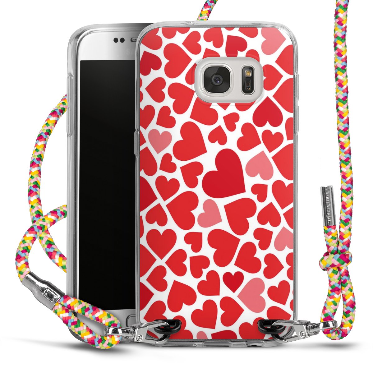 The flexible case is made from a highquality TPU material (thermoplastic Polyurethan). Thanks to its longlasting and break resistant characterisitcs, the case is flexible yet consistent in form and has a great grip and feel. The textile strap made from Polyester gives a chic yet casual accent allowing you to carry your phone like a bag or necklace - a practical gadget perfect for your next adventure. The textile strap is about 1.70 meters long and the length can easily be adjusted through the knots. Our Carry Case is available in Colourful, Mint-Camouflage, Very-Berry, Sahara-Sand and Sparkling-Neon. The ends of the textile strap are covered with metallic end caps to protect them against fraying.