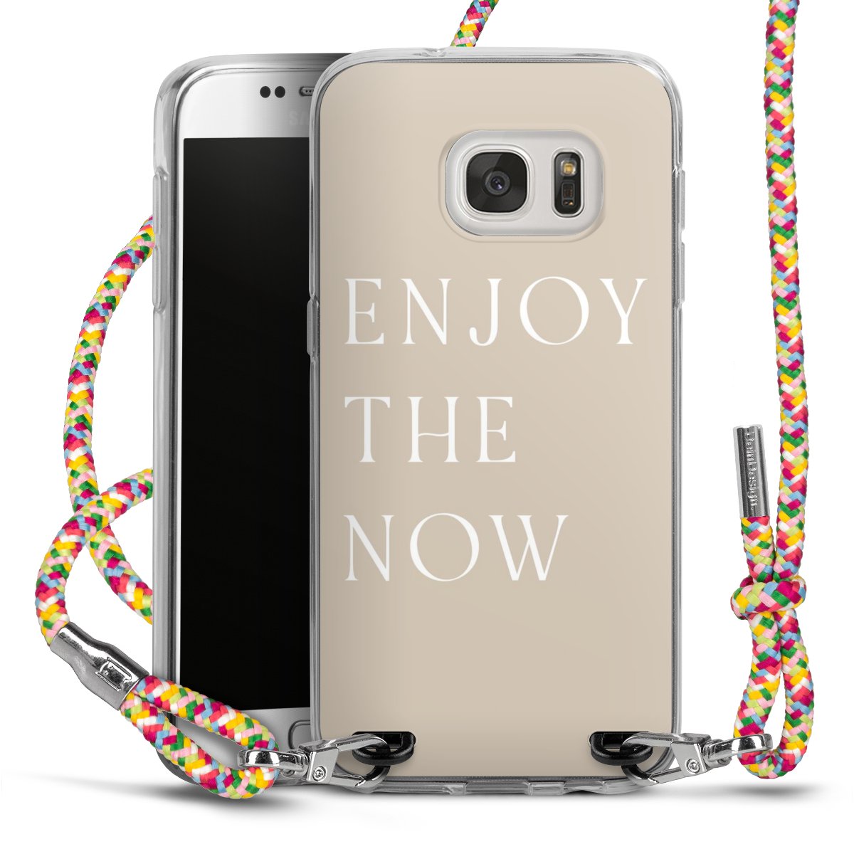 The flexible case is made from a highquality TPU material (thermoplastic Polyurethan). Thanks to its longlasting and break resistant characterisitcs, the case is flexible yet consistent in form and has a great grip and feel. The textile strap made from Polyester gives a chic yet casual accent allowing you to carry your phone like a bag or necklace - a practical gadget perfect for your next adventure. The textile strap is about 1.70 meters long and the length can easily be adjusted through the knots. Our Carry Case is available in Colourful, Mint-Camouflage, Very-Berry, Sahara-Sand and Sparkling-Neon. The ends of the textile strap are covered with metallic end caps to protect them against fraying.