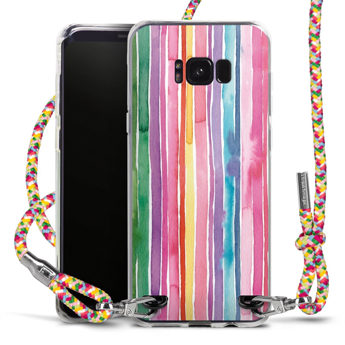 The flexible case is made from a highquality TPU material (thermoplastic Polyurethan). Thanks to its longlasting and break resistant characterisitcs, the case is flexible yet consistent in form and has a great grip and feel. The textile strap made from Polyester gives a chic yet casual accent allowing you to carry your phone like a bag or necklace - a practical gadget perfect for your next adventure. The textile strap is about 1.70 meters long and the length can easily be adjusted through the knots. Our Carry Case is available in Colourful, Mint-Camouflage, Very-Berry, Sahara-Sand and Sparkling-Neon. The ends of the textile strap are covered with metallic end caps to protect them against fraying.