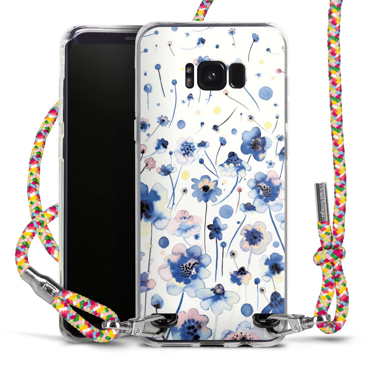 The flexible case is made from a highquality TPU material (thermoplastic Polyurethan). Thanks to its longlasting and break resistant characterisitcs, the case is flexible yet consistent in form and has a great grip and feel. The textile strap made from Polyester gives a chic yet casual accent allowing you to carry your phone like a bag or necklace - a practical gadget perfect for your next adventure. The textile strap is about 1.70 meters long and the length can easily be adjusted through the knots. Our Carry Case is available in Colourful, Mint-Camouflage, Very-Berry, Sahara-Sand and Sparkling-Neon. The ends of the textile strap are covered with metallic end caps to protect them against fraying.