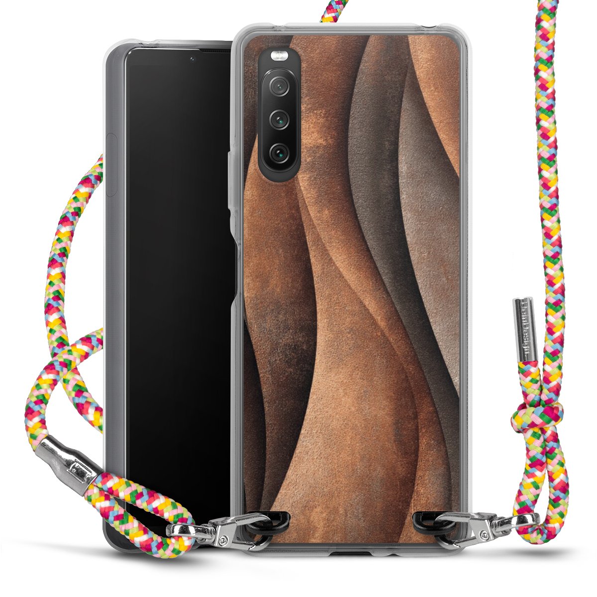 The flexible case is made from a highquality TPU material (thermoplastic Polyurethan). Thanks to its longlasting and break resistant characterisitcs, the case is flexible yet consistent in form and has a great grip and feel. The textile strap made from Polyester gives a chic yet casual accent allowing you to carry your phone like a bag or necklace - a practical gadget perfect for your next adventure. The textile strap is about 1.70 meters long and the length can easily be adjusted through the knots. Our Carry Case is available in Colourful, Mint-Camouflage, Very-Berry, Sahara-Sand and Sparkling-Neon. The ends of the textile strap are covered with metallic end caps to protect them against fraying.