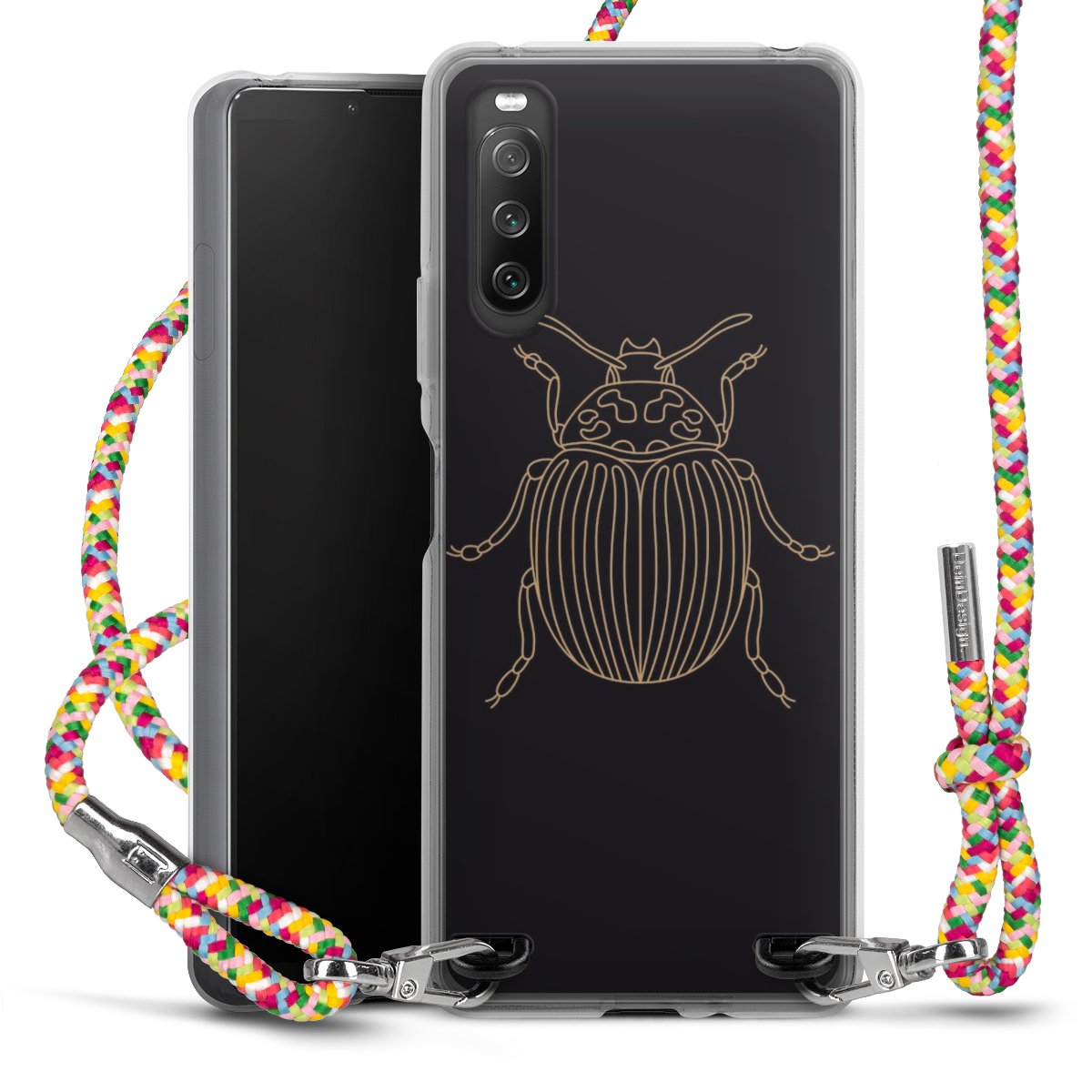 The flexible case is made from a highquality TPU material (thermoplastic Polyurethan). Thanks to its longlasting and break resistant characterisitcs, the case is flexible yet consistent in form and has a great grip and feel. The textile strap made from Polyester gives a chic yet casual accent allowing you to carry your phone like a bag or necklace - a practical gadget perfect for your next adventure. The textile strap is about 1.70 meters long and the length can easily be adjusted through the knots. Our Carry Case is available in Colourful, Mint-Camouflage, Very-Berry, Sahara-Sand and Sparkling-Neon. The ends of the textile strap are covered with metallic end caps to protect them against fraying.
