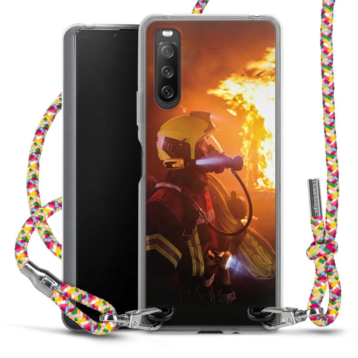 The flexible case is made from a highquality TPU material (thermoplastic Polyurethan). Thanks to its longlasting and break resistant characterisitcs, the case is flexible yet consistent in form and has a great grip and feel. The textile strap made from Polyester gives a chic yet casual accent allowing you to carry your phone like a bag or necklace - a practical gadget perfect for your next adventure. The textile strap is about 1.70 meters long and the length can easily be adjusted through the knots. Our Carry Case is available in Colourful, Mint-Camouflage, Very-Berry, Sahara-Sand and Sparkling-Neon. The ends of the textile strap are covered with metallic end caps to protect them against fraying.