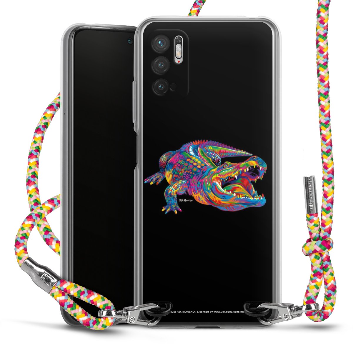 The flexible case is made from a highquality TPU material (thermoplastic Polyurethan). Thanks to its longlasting and break resistant characterisitcs, the case is flexible yet consistent in form and has a great grip and feel. The textile strap made from Polyester gives a chic yet casual accent allowing you to carry your phone like a bag or necklace - a practical gadget perfect for your next adventure. The textile strap is about 1.70 meters long and the length can easily be adjusted through the knots. Our Carry Case is available in Colourful, Mint-Camouflage, Very-Berry, Sahara-Sand and Sparkling-Neon. The ends of the textile strap are covered with metallic end caps to protect them against fraying.