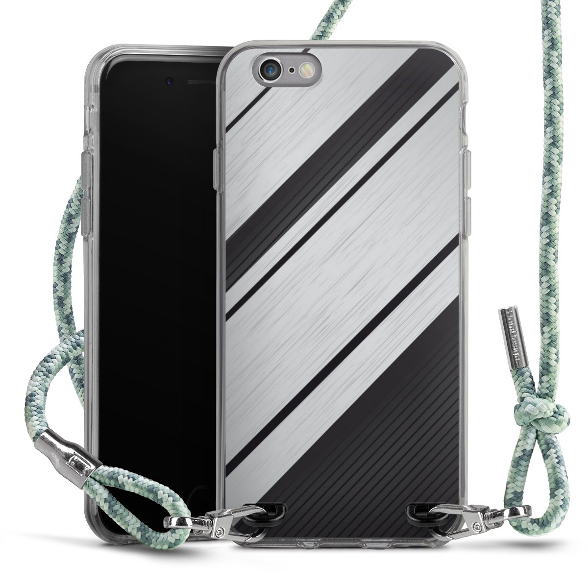 The flexible case is made from a highquality TPU material (thermoplastic Polyurethan). Thanks to its longlasting and break resistant characterisitcs, the case is flexible yet consistent in form and has a great grip and feel. The textile strap made from Polyester gives a chic yet casual accent allowing you to carry your phone like a bag or necklace - a practical gadget perfect for your next adventure. The textile strap is about 1.70 meters long and the length can easily be adjusted through the knots. Our Carry Case is available in Colourful, Mint-Camouflage, Very-Berry, Sahara-Sand and Sparkling-Neon. The ends of the textile strap are covered with metallic end caps to protect them against fraying.
