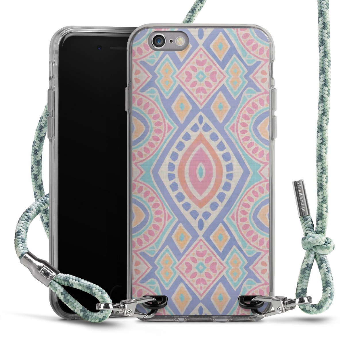 The flexible case is made from a highquality TPU material (thermoplastic Polyurethan). Thanks to its longlasting and break resistant characterisitcs, the case is flexible yet consistent in form and has a great grip and feel. The textile strap made from Polyester gives a chic yet casual accent allowing you to carry your phone like a bag or necklace - a practical gadget perfect for your next adventure. The textile strap is about 1.70 meters long and the length can easily be adjusted through the knots. Our Carry Case is available in Colourful, Mint-Camouflage, Very-Berry, Sahara-Sand and Sparkling-Neon. The ends of the textile strap are covered with metallic end caps to protect them against fraying.