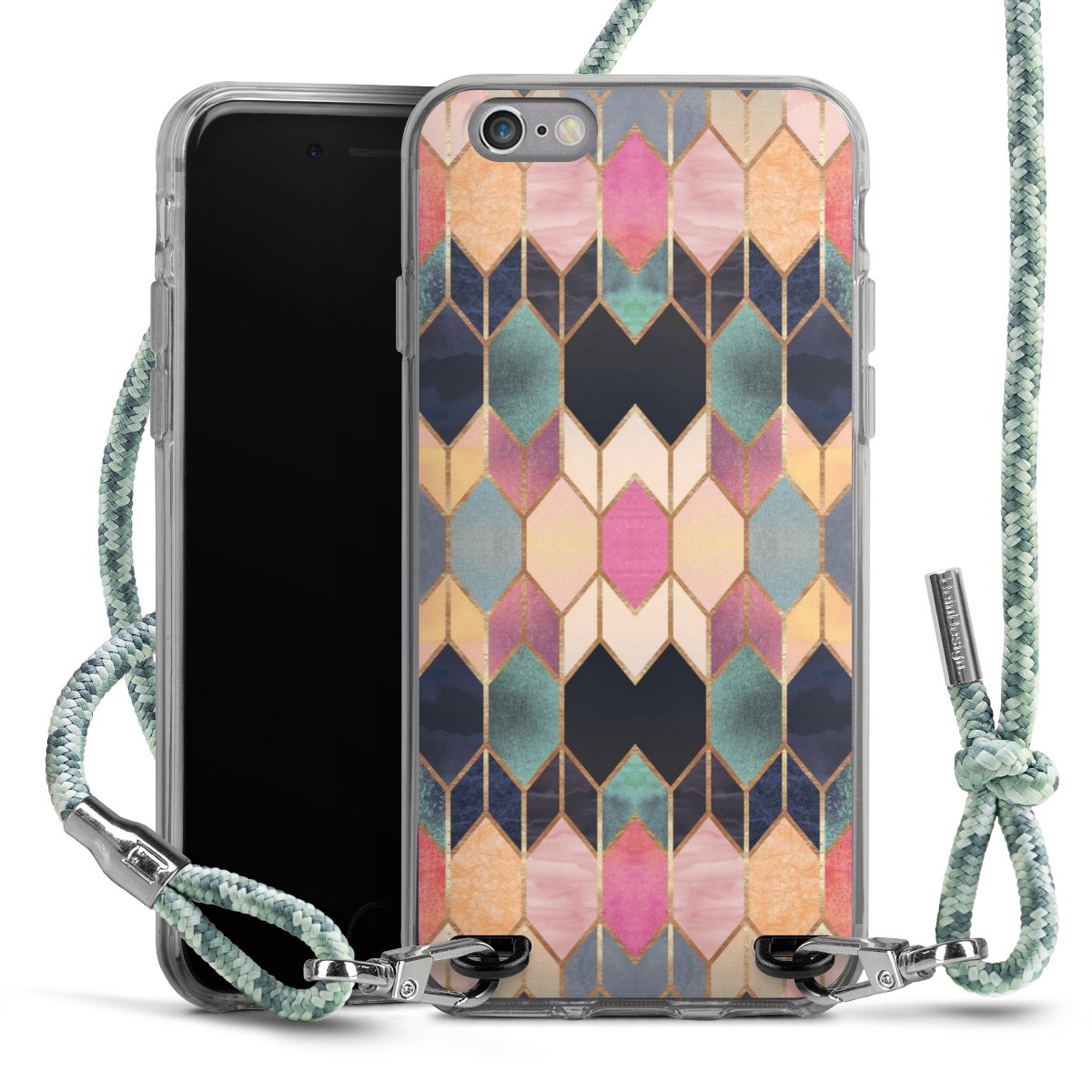 The flexible case is made from a highquality TPU material (thermoplastic Polyurethan). Thanks to its longlasting and break resistant characterisitcs, the case is flexible yet consistent in form and has a great grip and feel. The textile strap made from Polyester gives a chic yet casual accent allowing you to carry your phone like a bag or necklace - a practical gadget perfect for your next adventure. The textile strap is about 1.70 meters long and the length can easily be adjusted through the knots. Our Carry Case is available in Colourful, Mint-Camouflage, Very-Berry, Sahara-Sand and Sparkling-Neon. The ends of the textile strap are covered with metallic end caps to protect them against fraying.