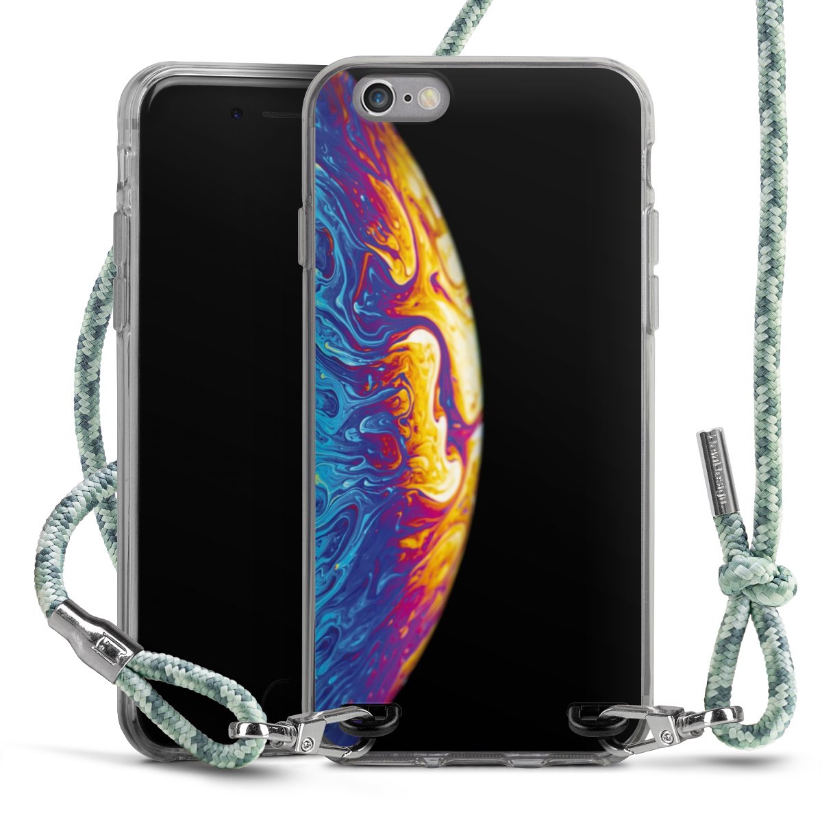 The flexible case is made from a highquality TPU material (thermoplastic Polyurethan). Thanks to its longlasting and break resistant characterisitcs, the case is flexible yet consistent in form and has a great grip and feel. The textile strap made from Polyester gives a chic yet casual accent allowing you to carry your phone like a bag or necklace - a practical gadget perfect for your next adventure. The textile strap is about 1.70 meters long and the length can easily be adjusted through the knots. Our Carry Case is available in Colourful, Mint-Camouflage, Very-Berry, Sahara-Sand and Sparkling-Neon. The ends of the textile strap are covered with metallic end caps to protect them against fraying.