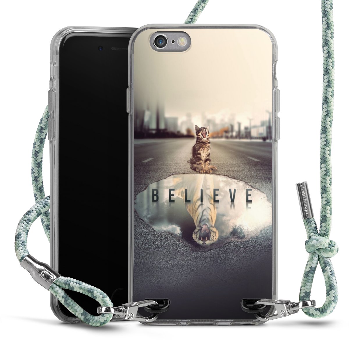 The flexible case is made from a highquality TPU material (thermoplastic Polyurethan). Thanks to its longlasting and break resistant characterisitcs, the case is flexible yet consistent in form and has a great grip and feel. The textile strap made from Polyester gives a chic yet casual accent allowing you to carry your phone like a bag or necklace - a practical gadget perfect for your next adventure. The textile strap is about 1.70 meters long and the length can easily be adjusted through the knots. Our Carry Case is available in Colourful, Mint-Camouflage, Very-Berry, Sahara-Sand and Sparkling-Neon. The ends of the textile strap are covered with metallic end caps to protect them against fraying.