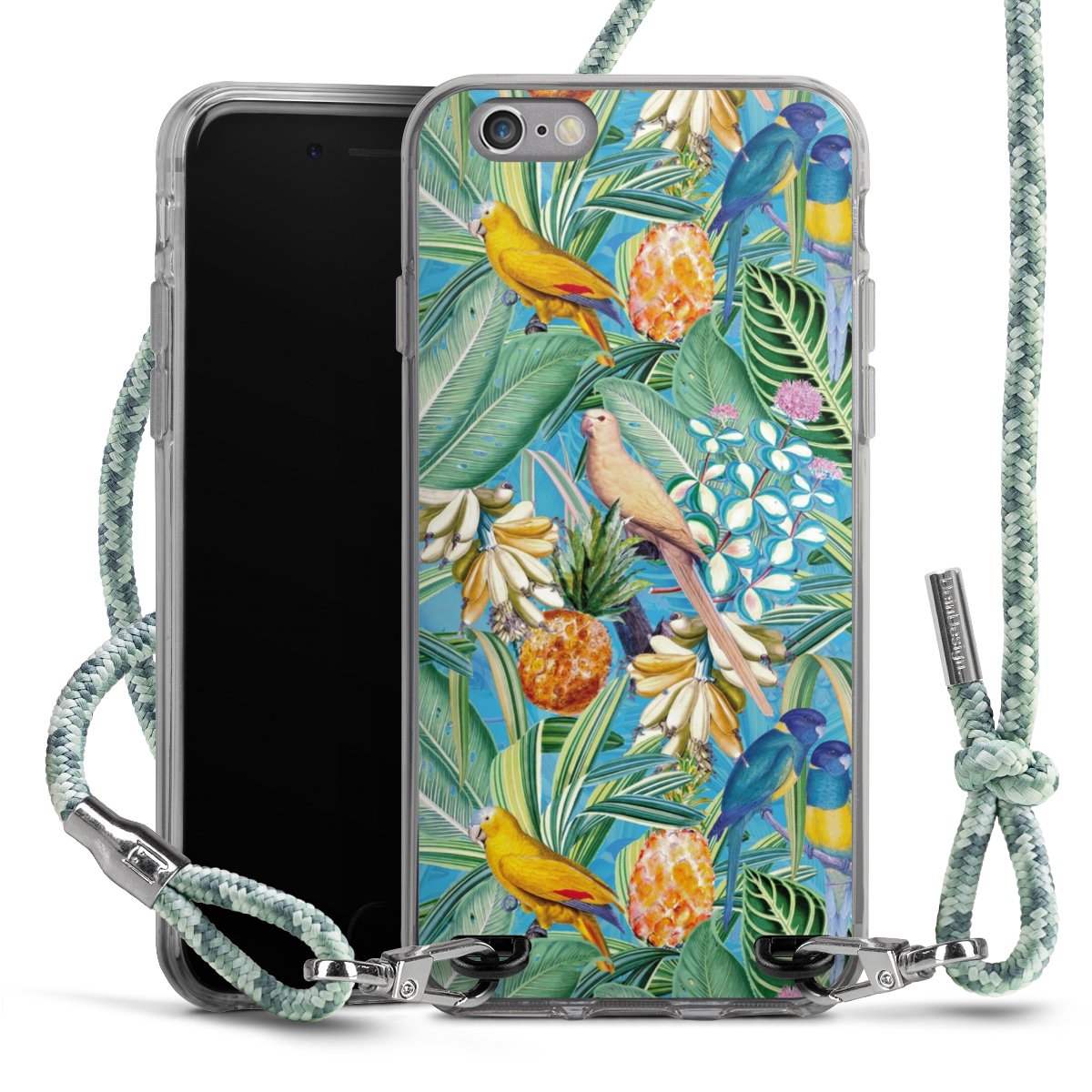 The flexible case is made from a highquality TPU material (thermoplastic Polyurethan). Thanks to its longlasting and break resistant characterisitcs, the case is flexible yet consistent in form and has a great grip and feel. The textile strap made from Polyester gives a chic yet casual accent allowing you to carry your phone like a bag or necklace - a practical gadget perfect for your next adventure. The textile strap is about 1.70 meters long and the length can easily be adjusted through the knots. Our Carry Case is available in Colourful, Mint-Camouflage, Very-Berry, Sahara-Sand and Sparkling-Neon. The ends of the textile strap are covered with metallic end caps to protect them against fraying.